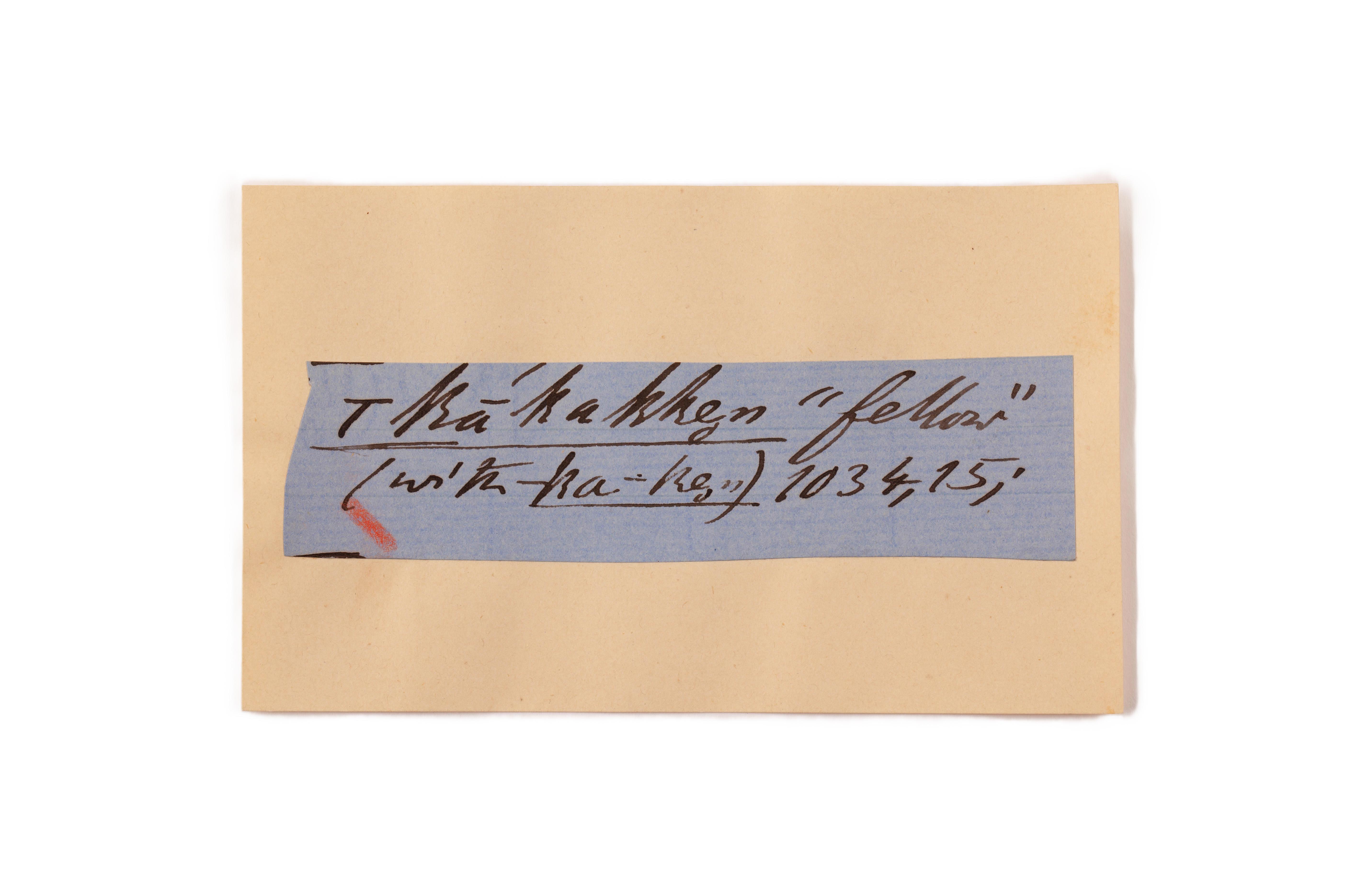 ink on blue paper glued on card