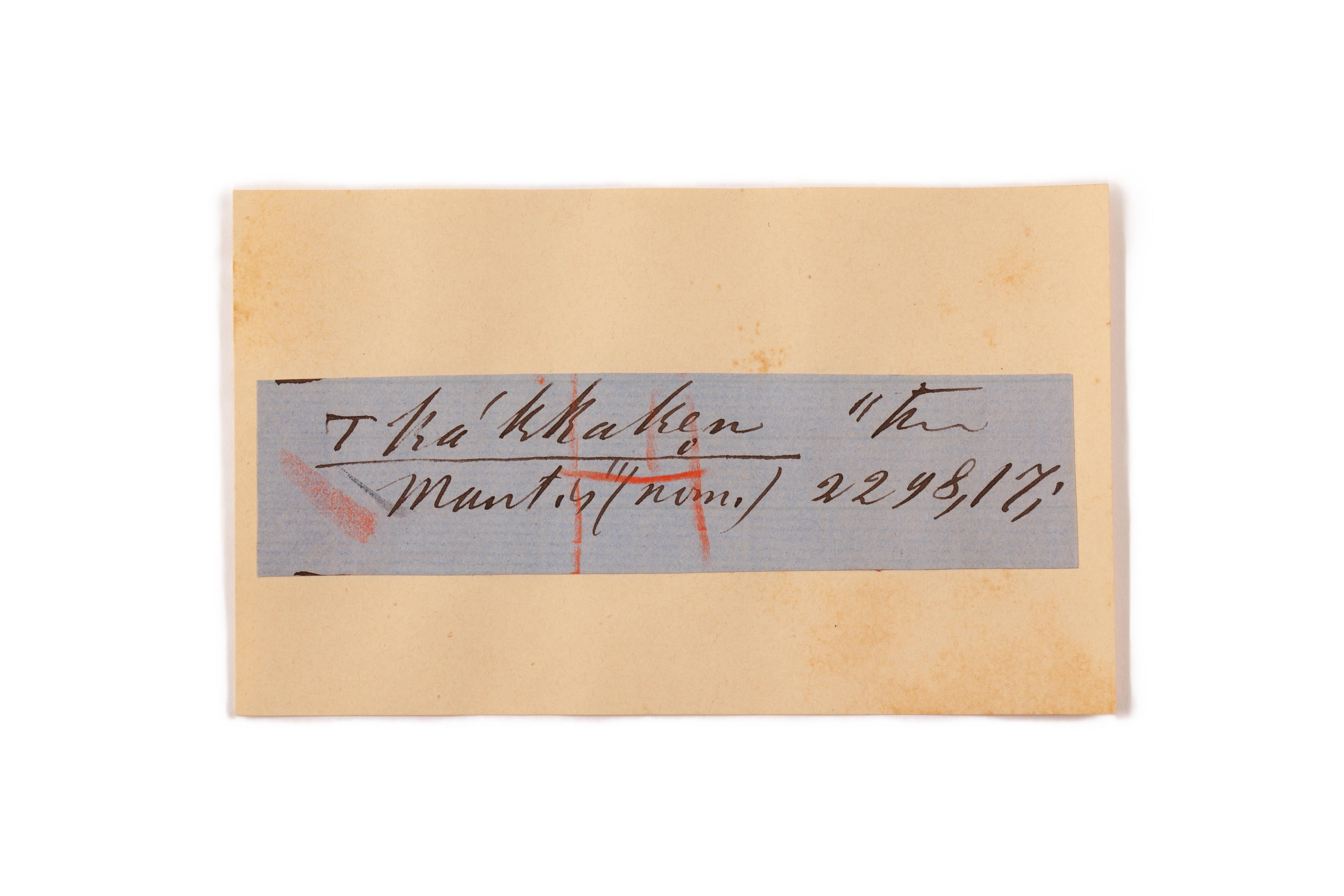 ink on blue paper glued on card