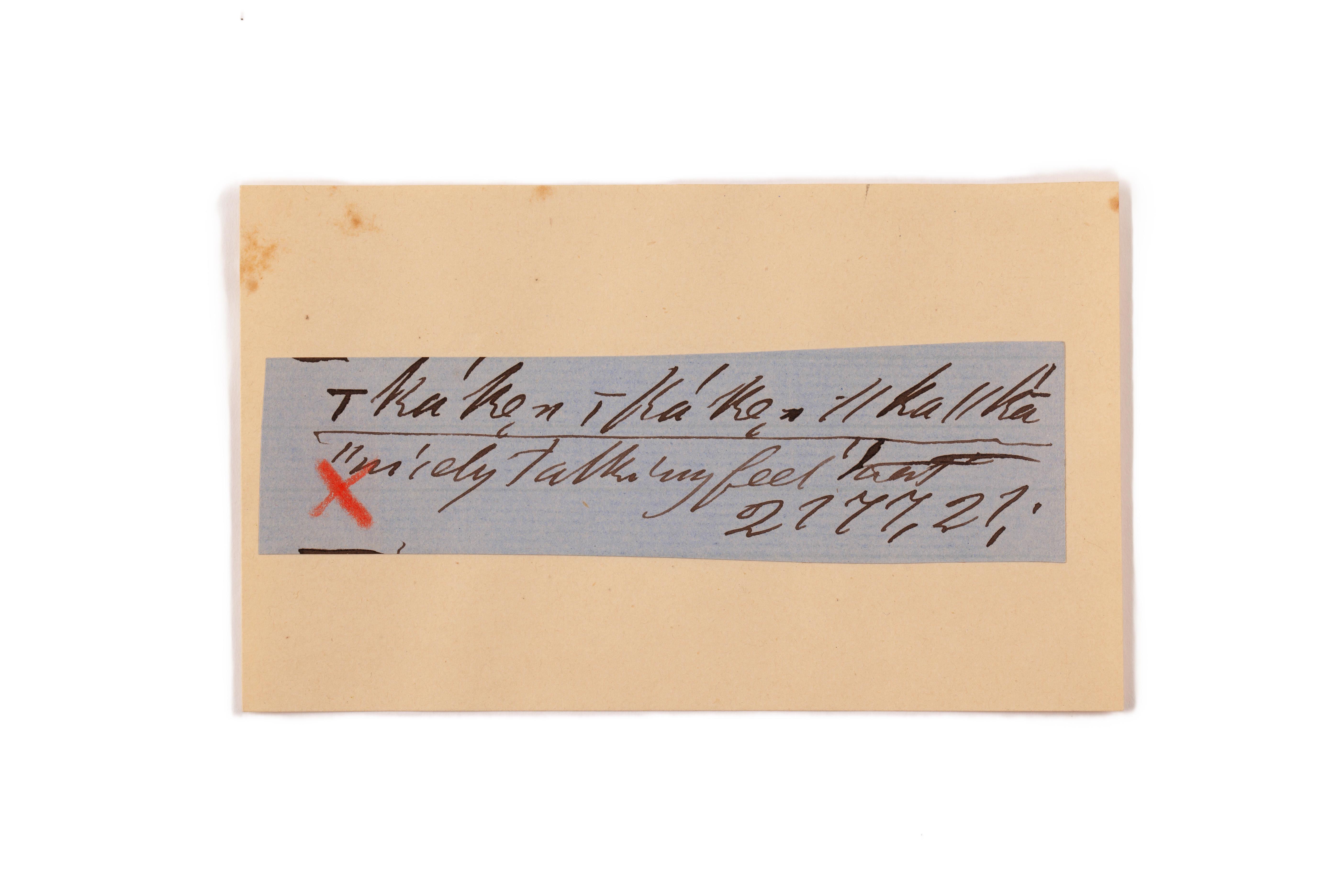 ink on blue paper glued on card
