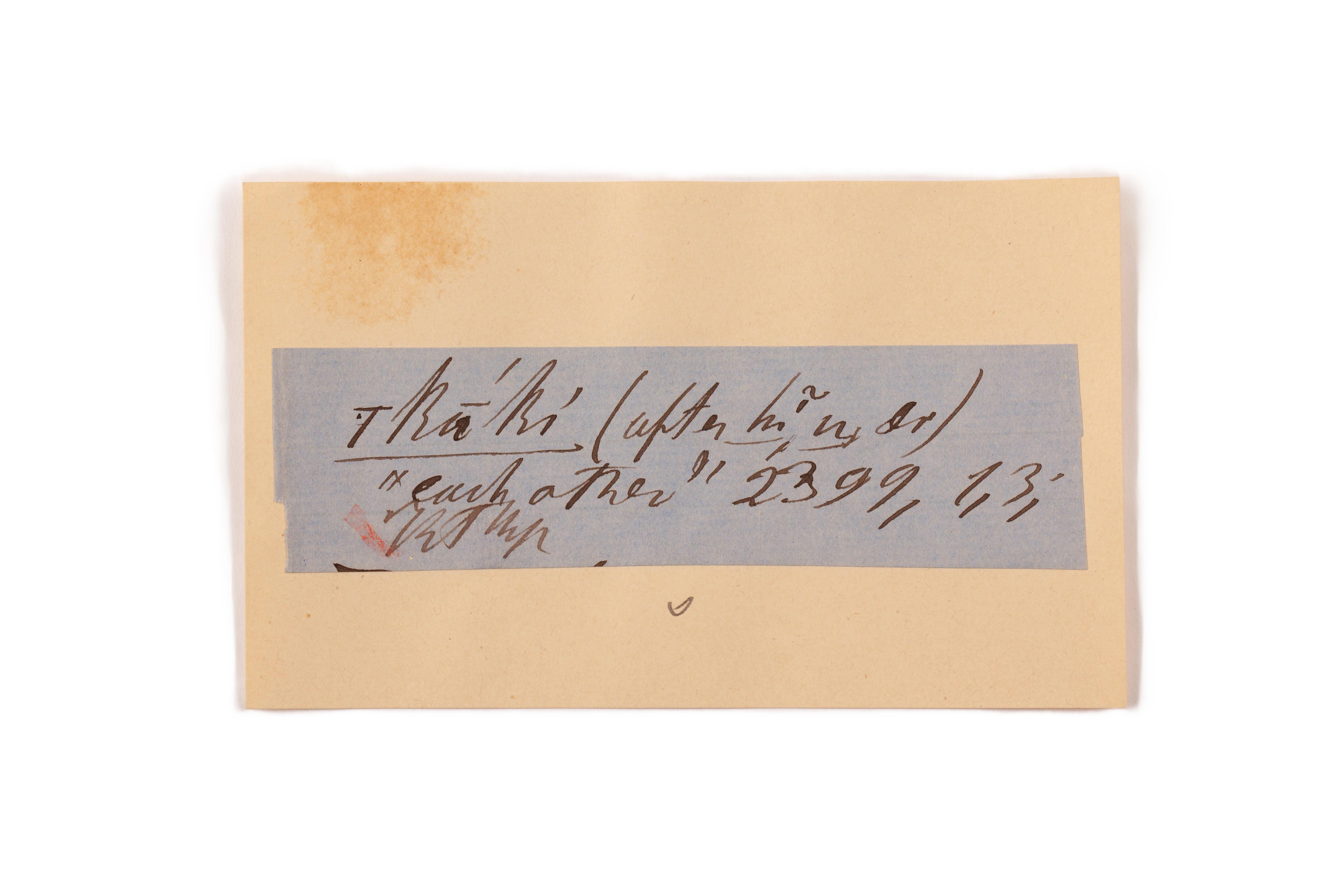 ink on blue paper glued on card
