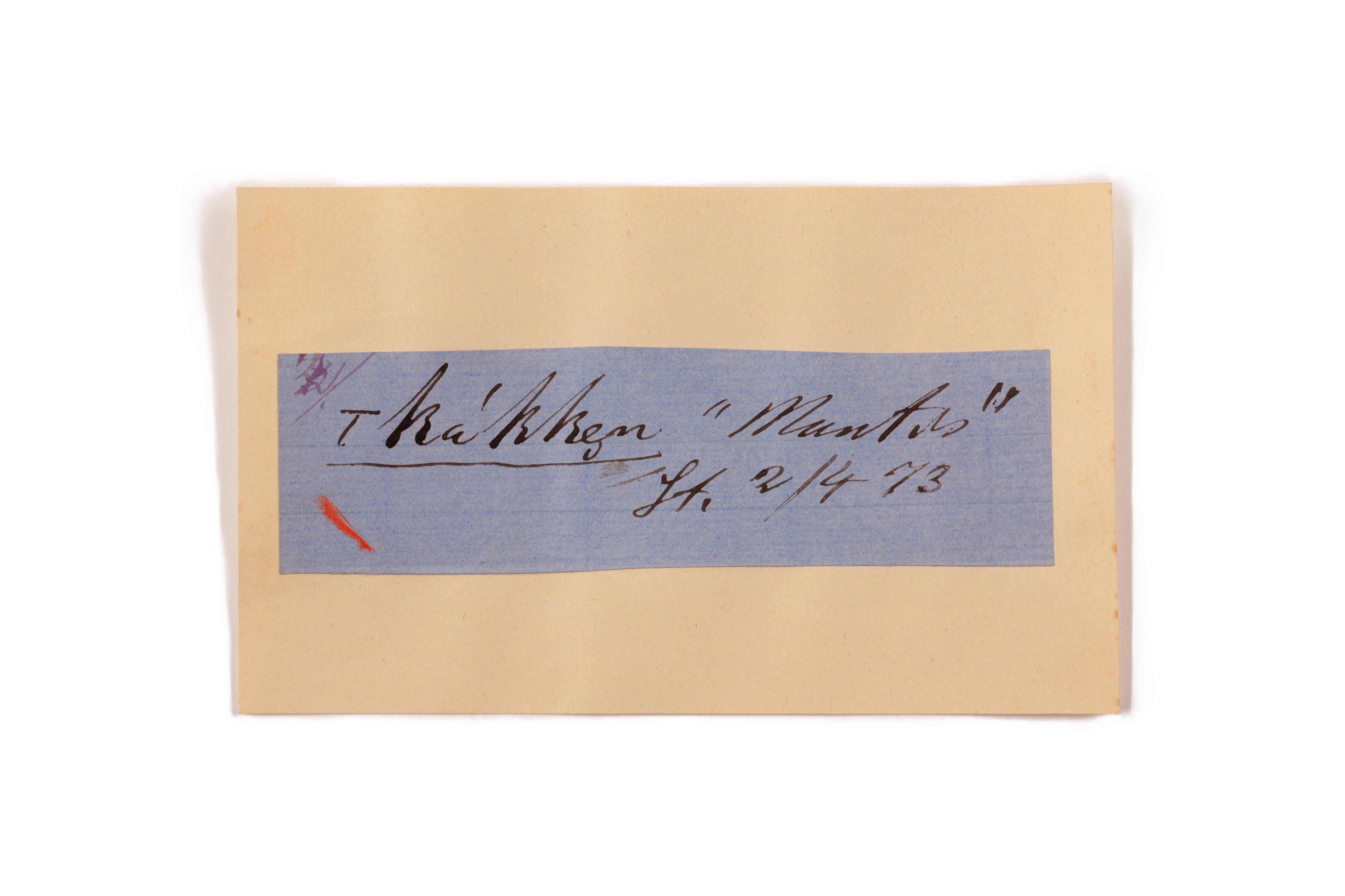 ink on blue paper glued on card