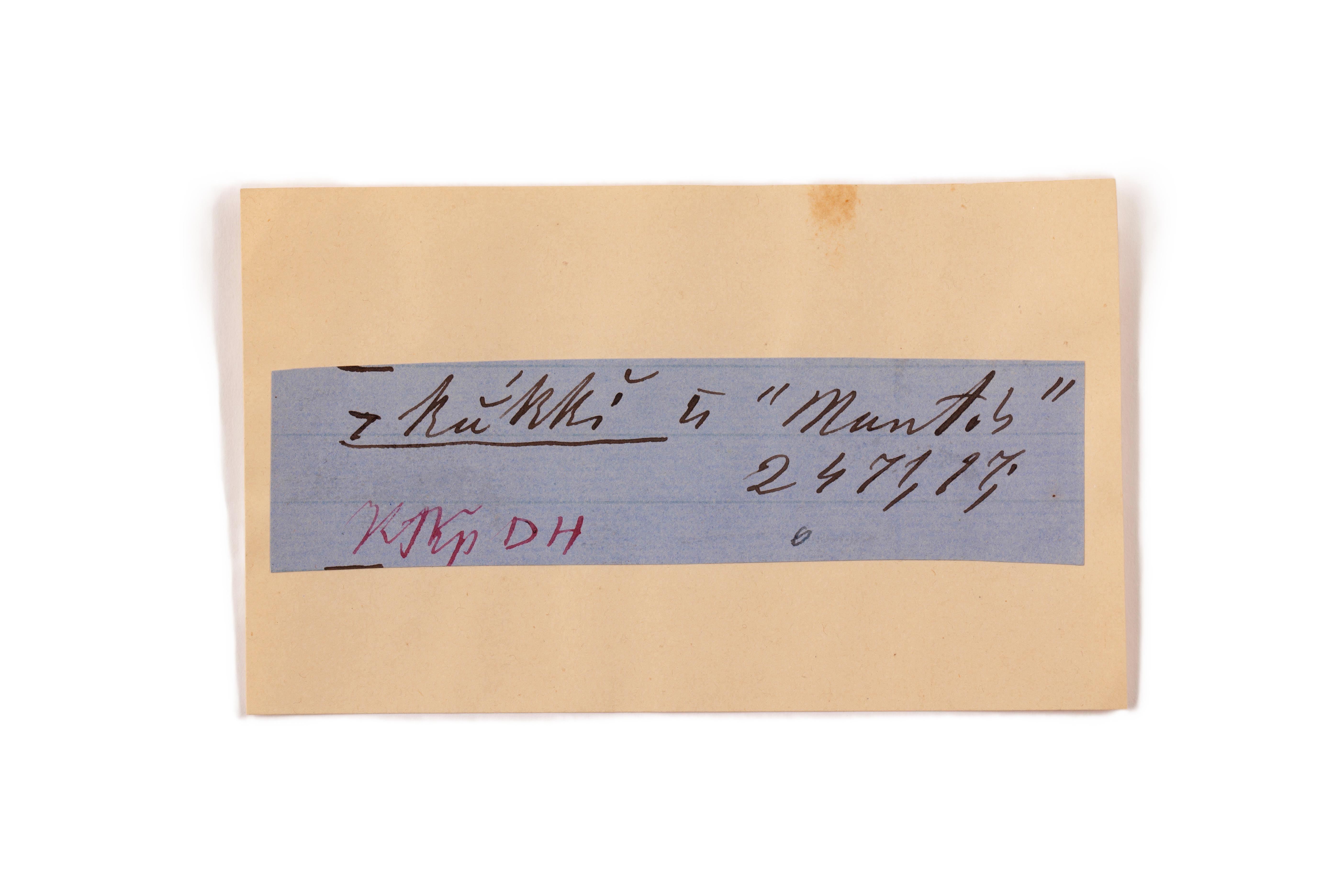 ink on blue paper glued on card