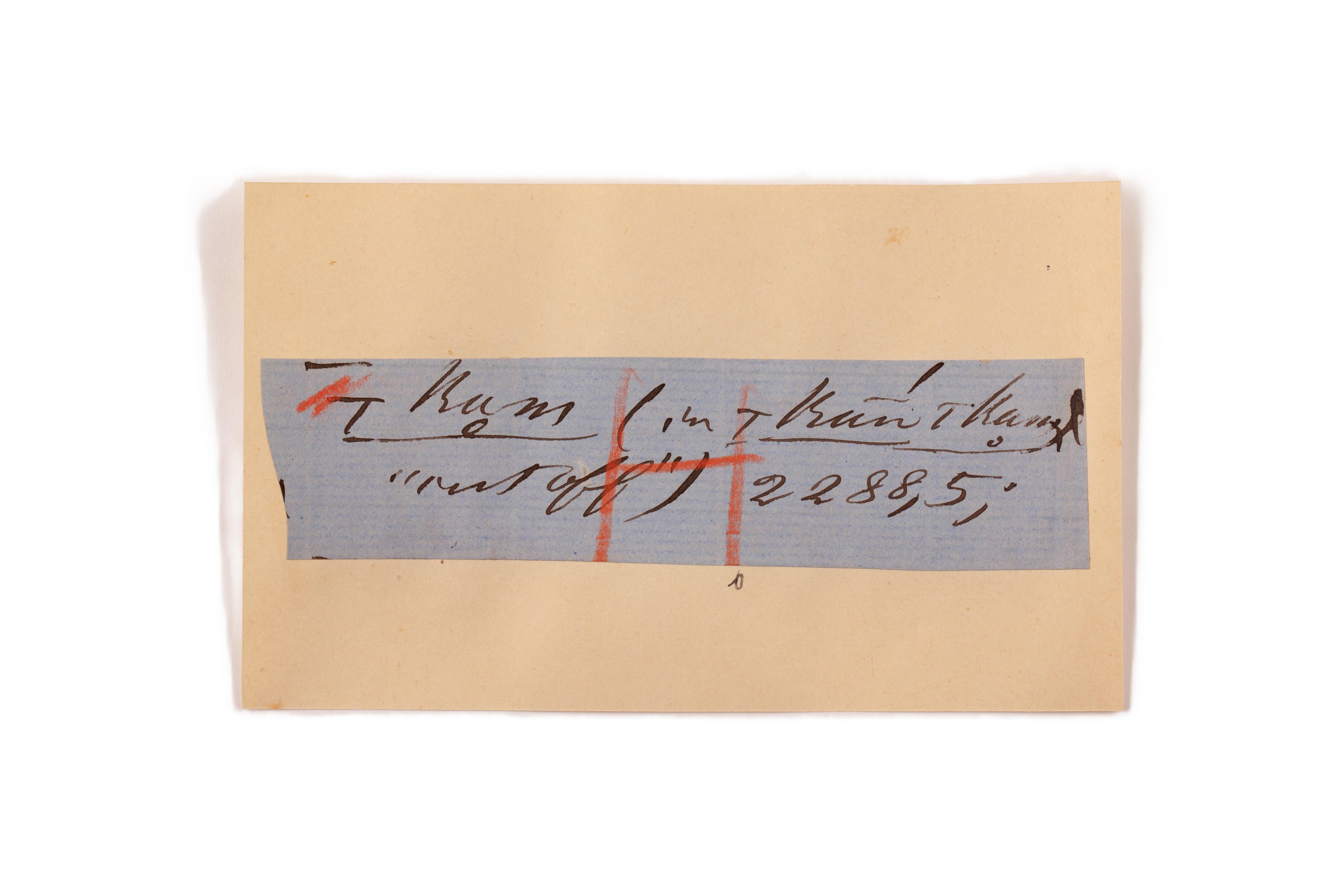 ink on blue paper glued on card