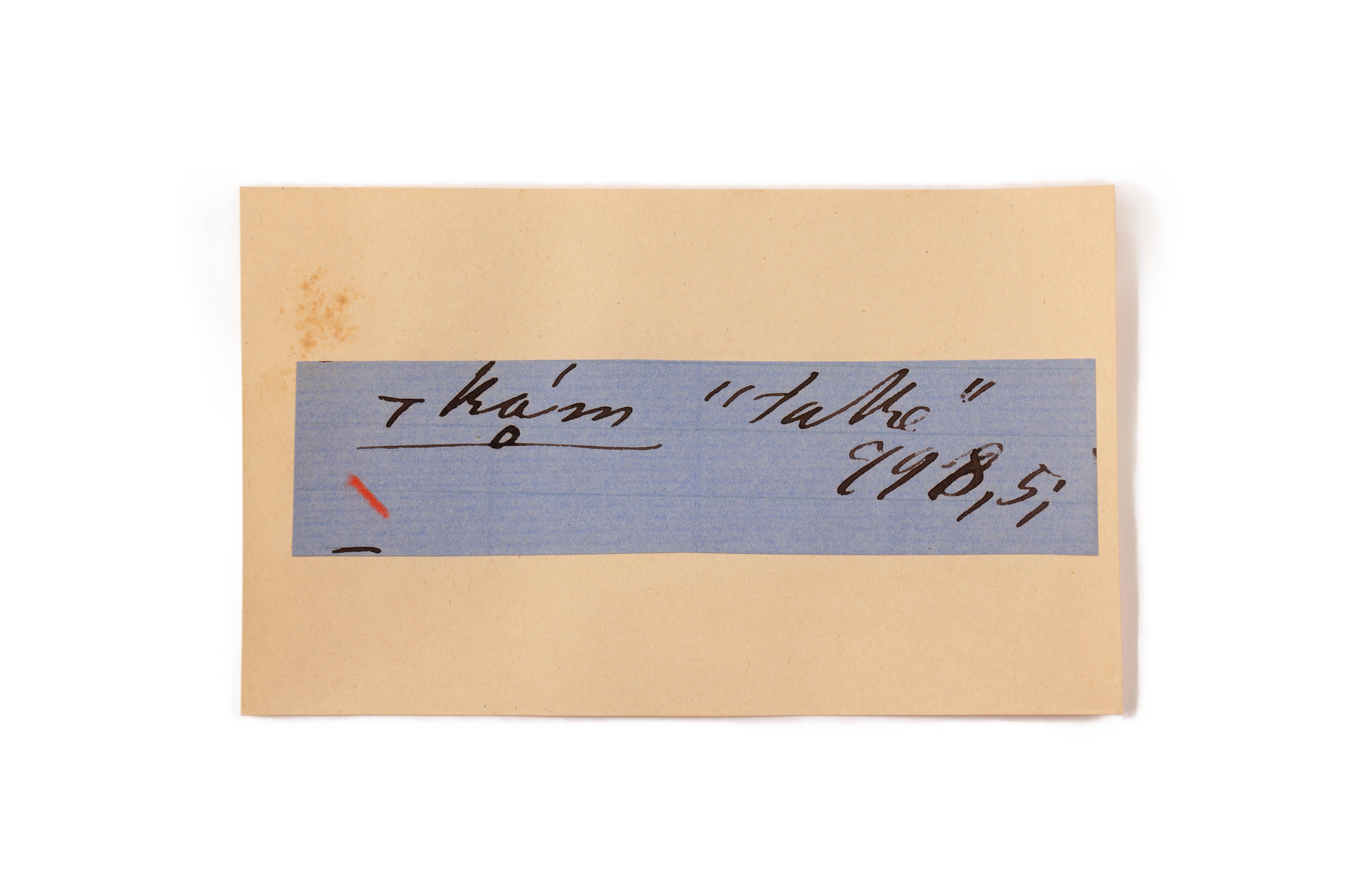 ink on blue paper glued on card