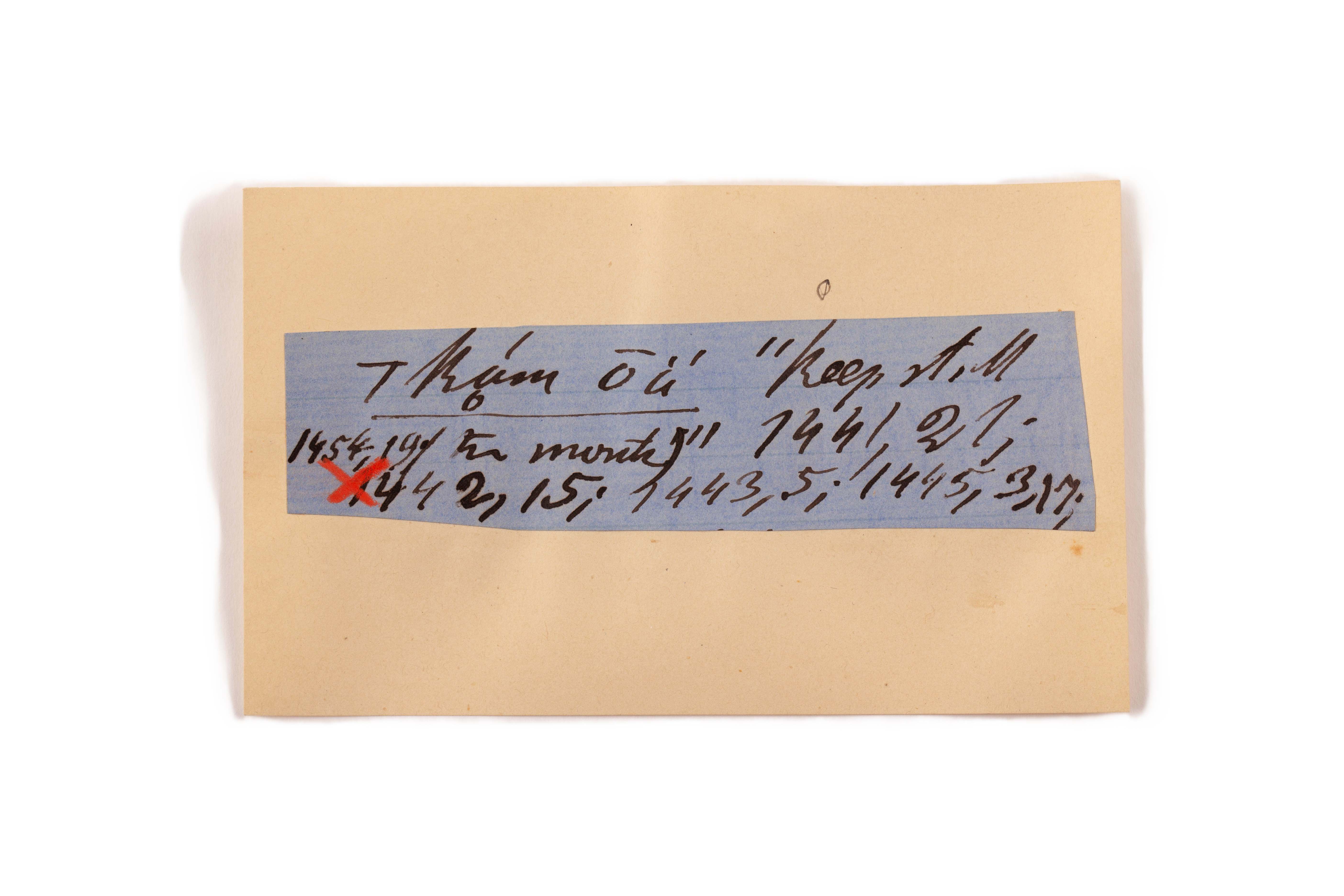 ink on blue paper glued on card