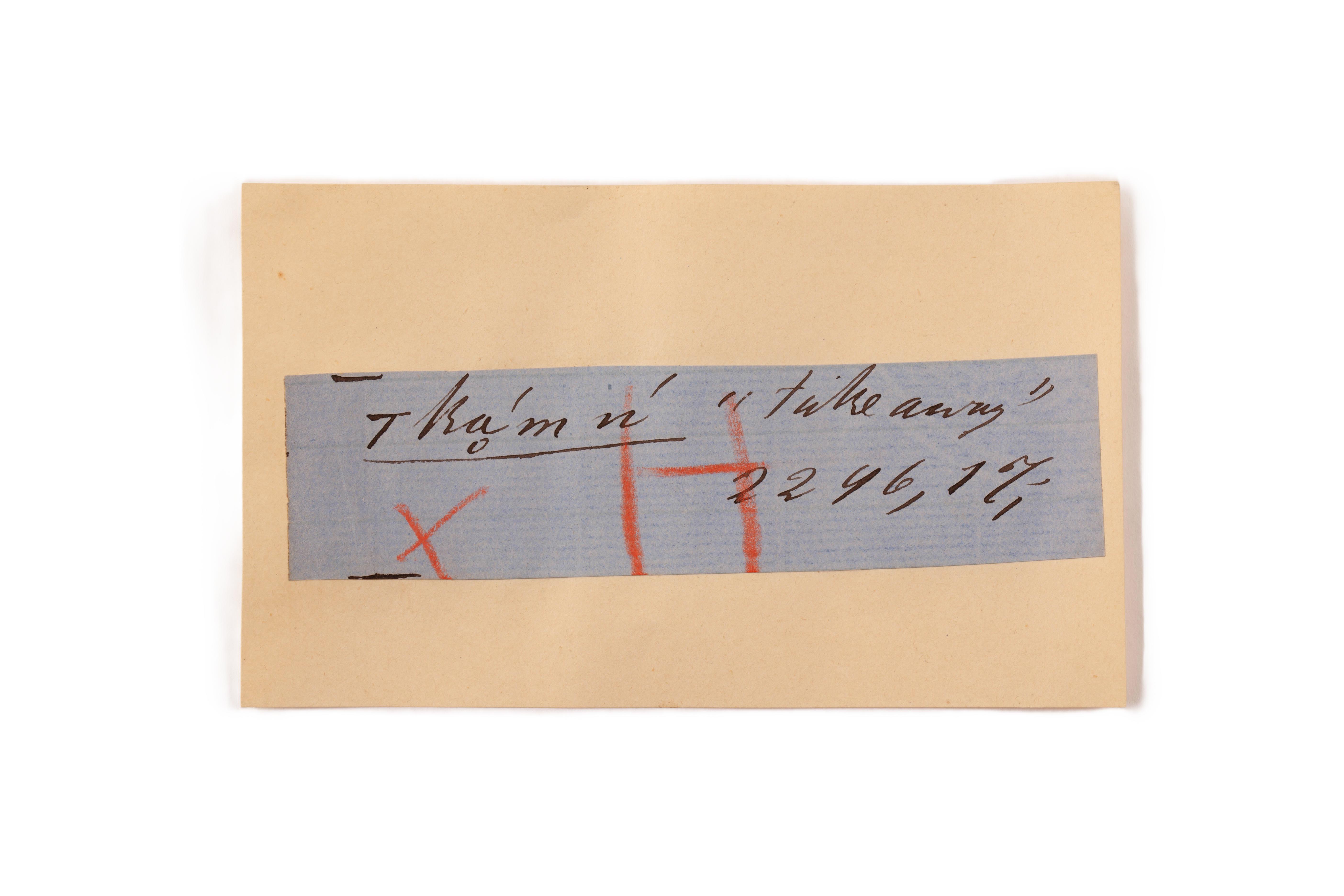 ink on blue paper glued on card