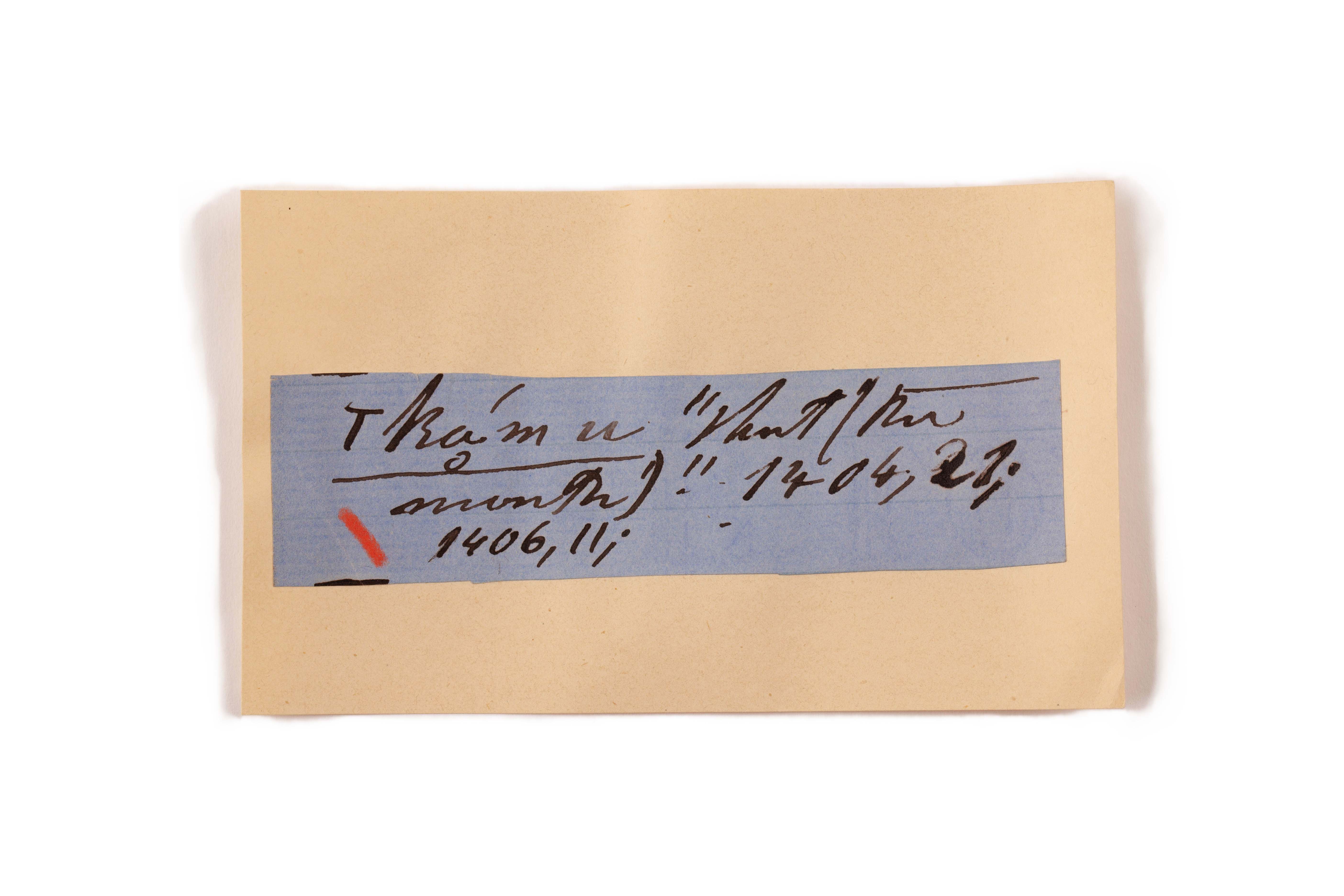 ink on blue paper glued on card