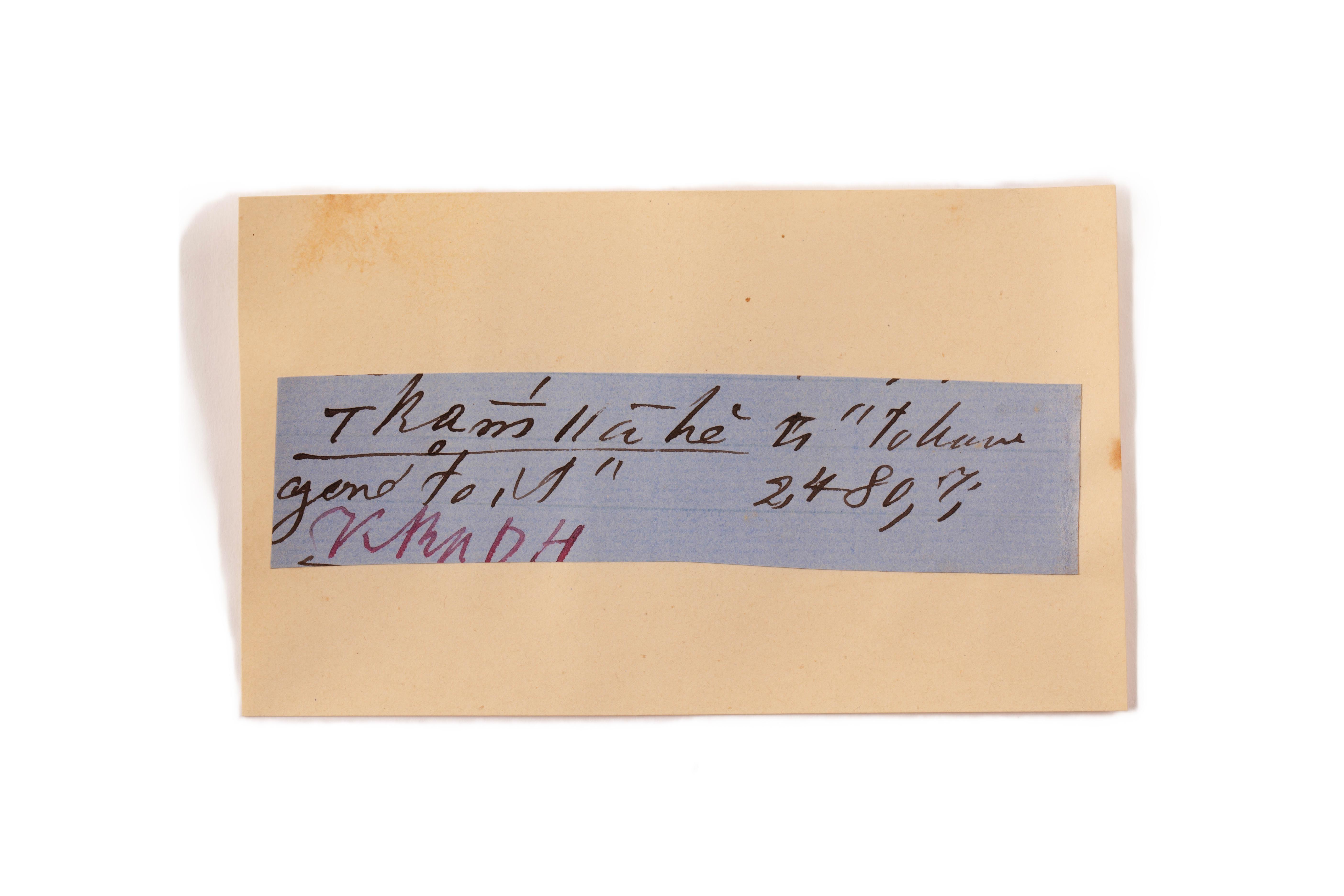 ink on blue paper glued on card