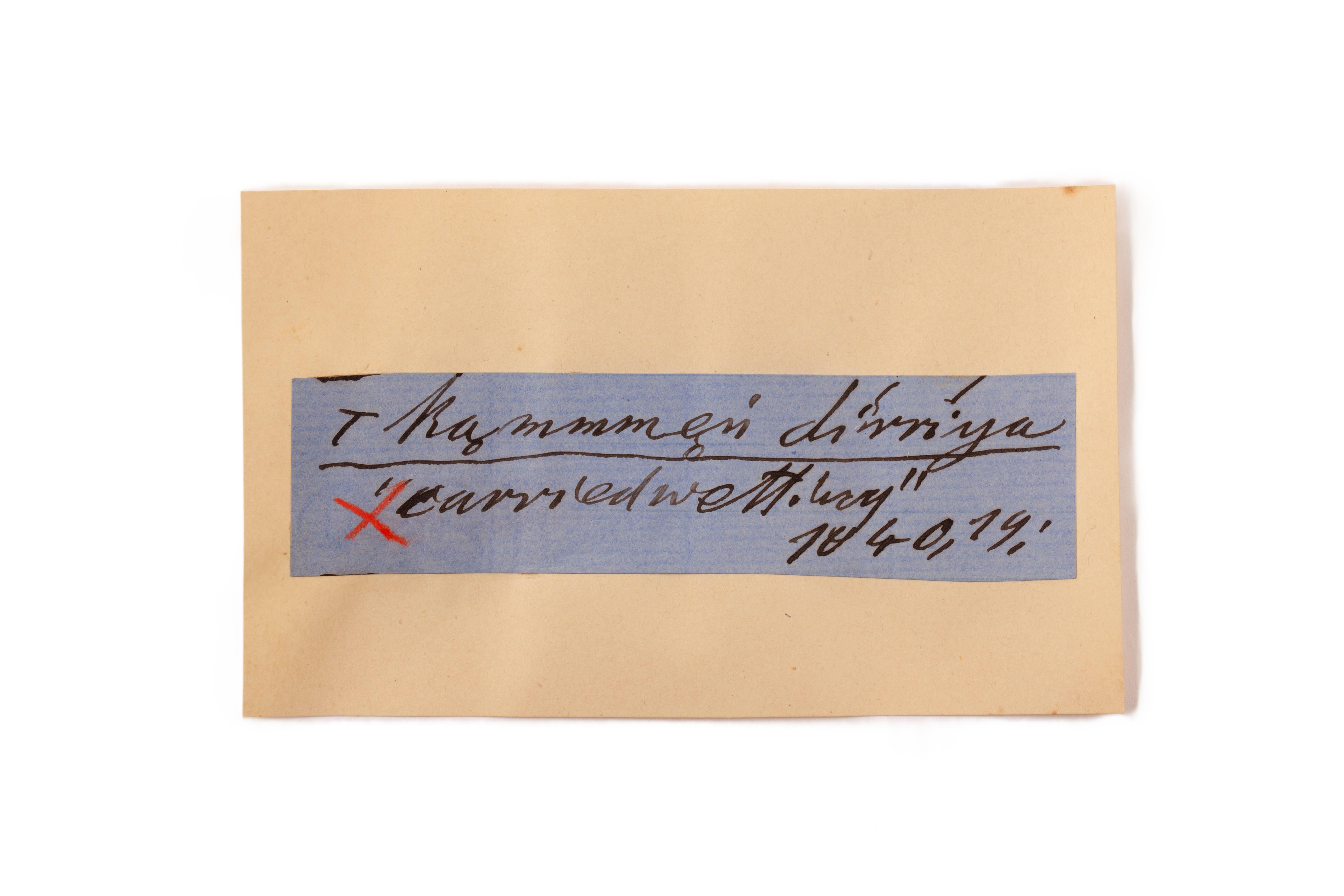 ink on blue paper glued on card