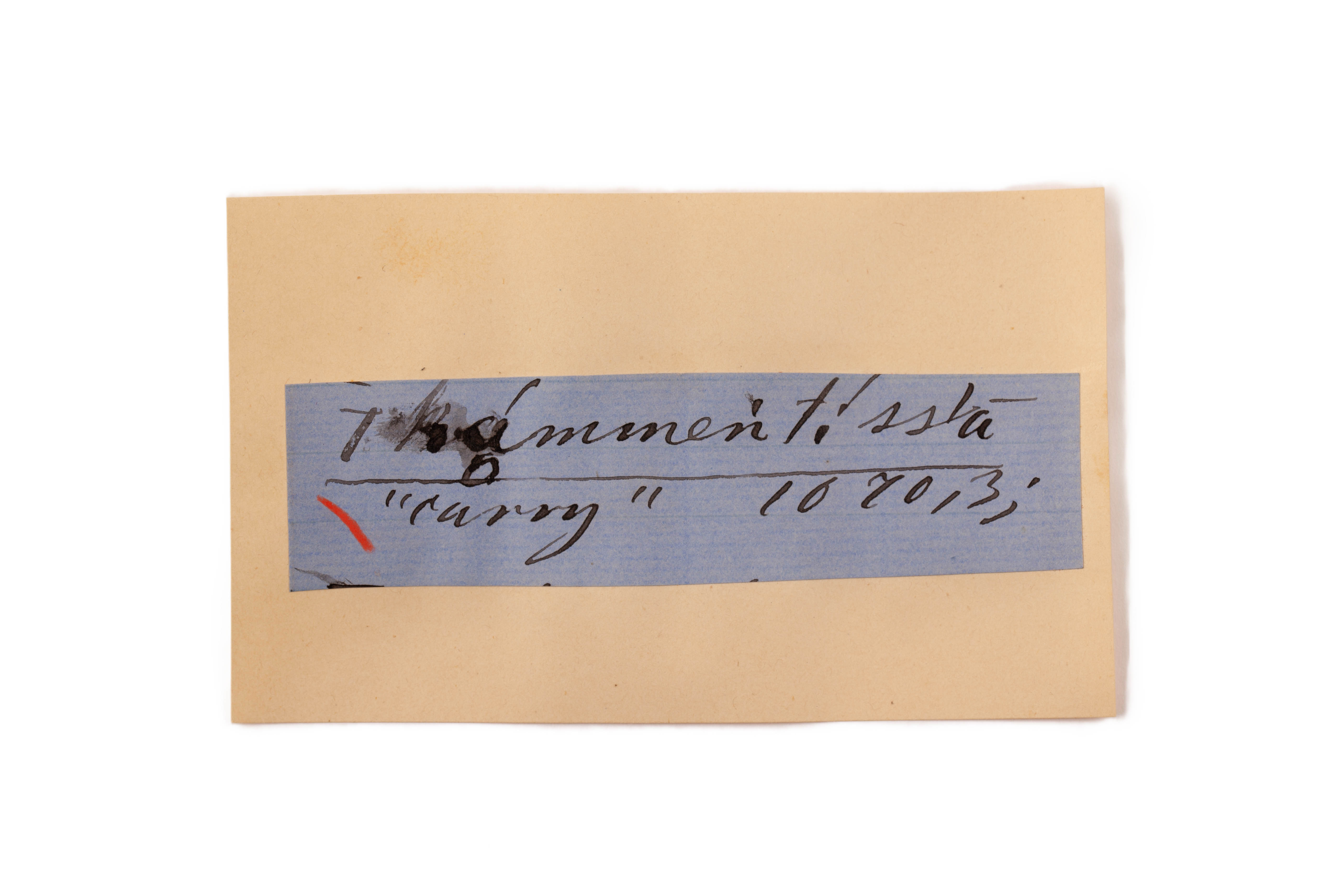 ink on blue paper glued on card