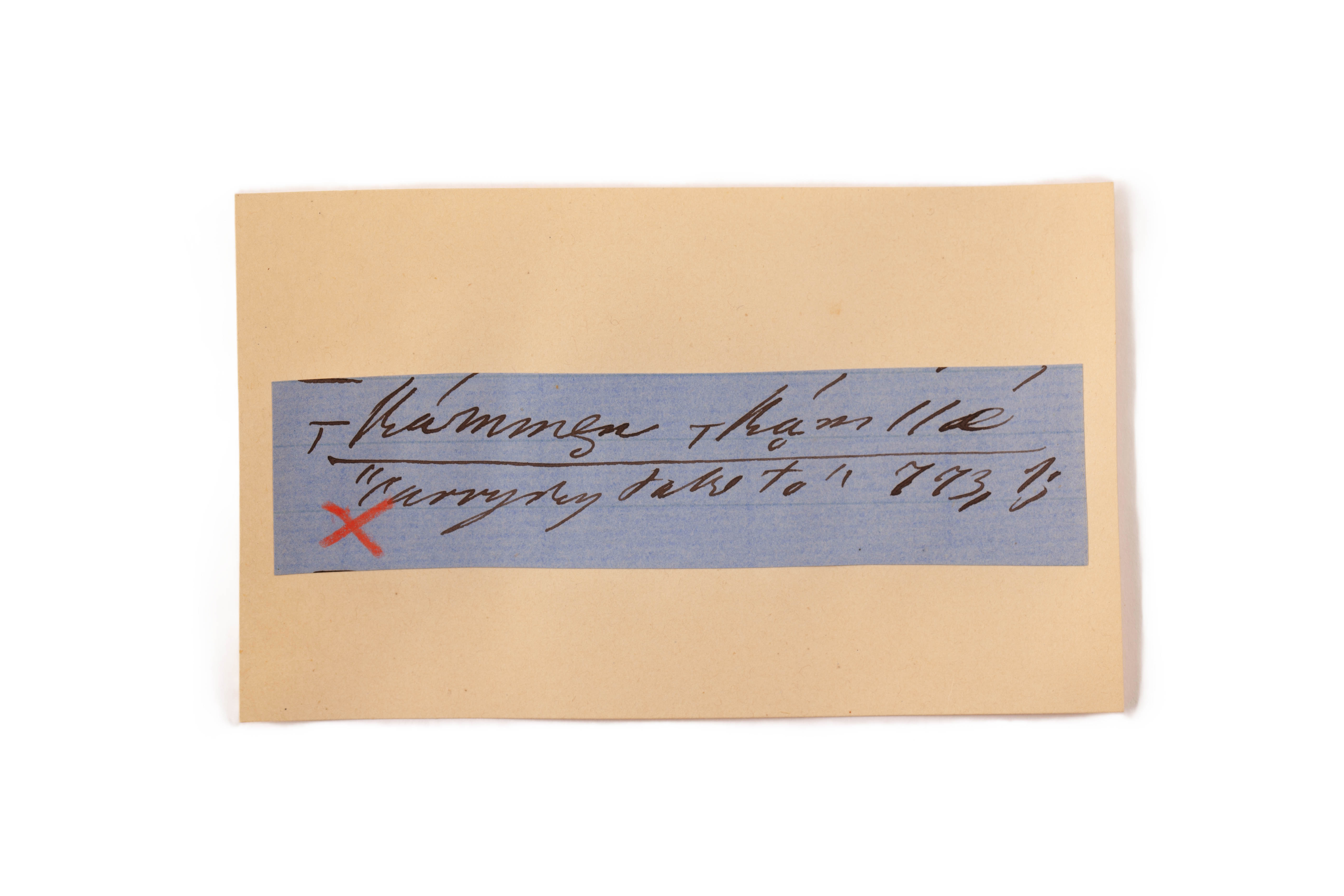 ink on blue paper glued on card