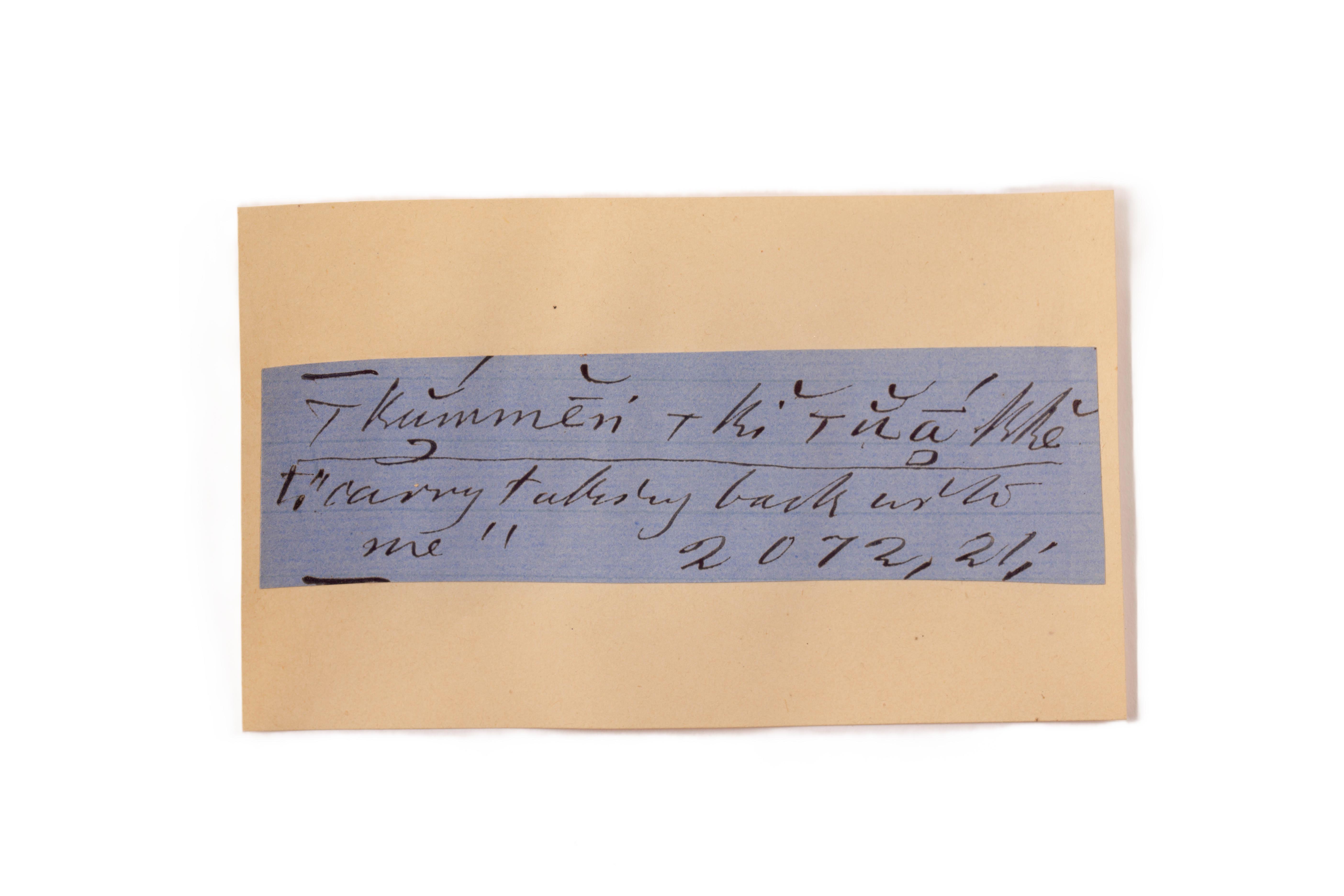 ink on blue paper glued on card