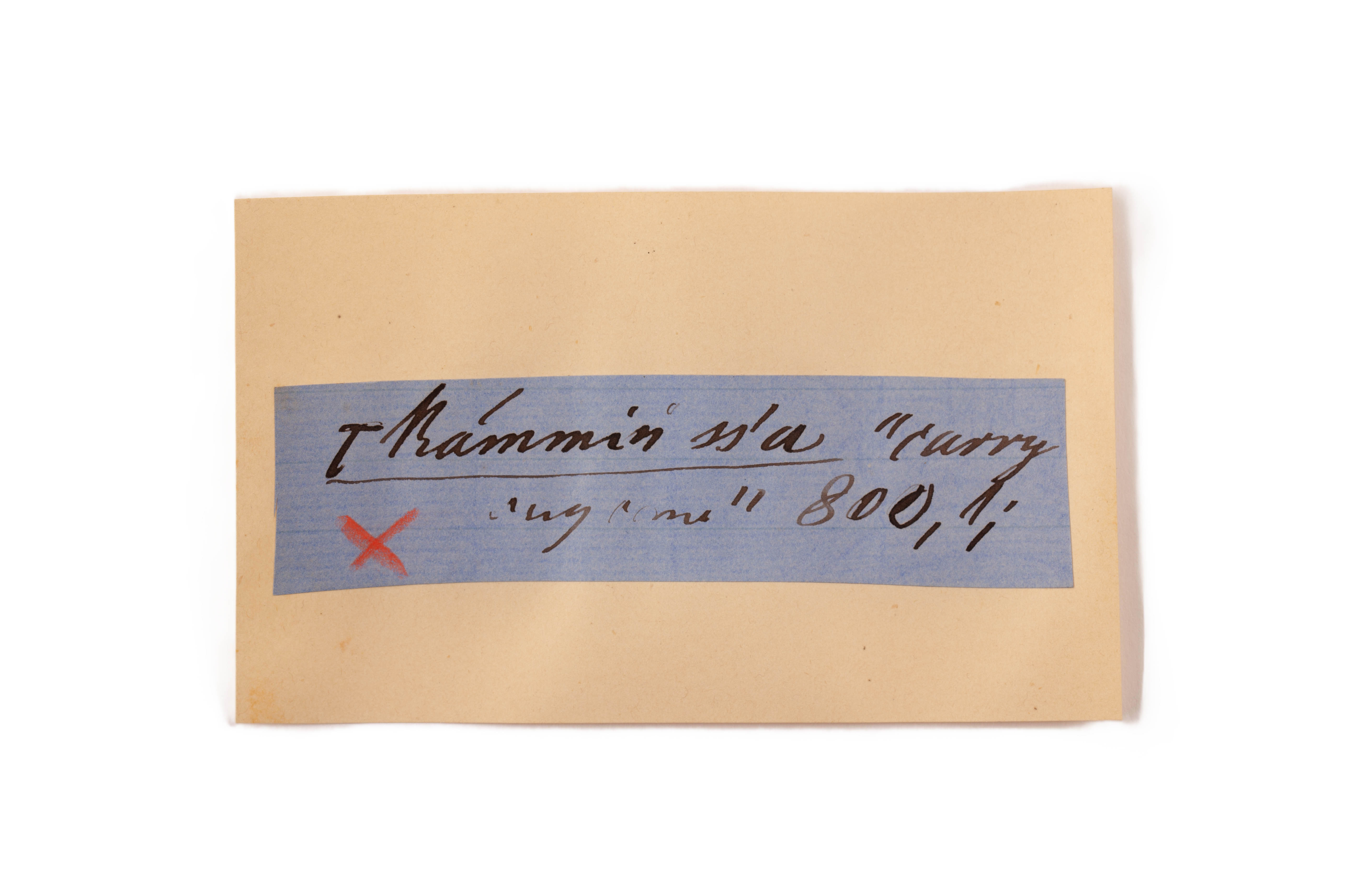 ink on blue paper glued on card