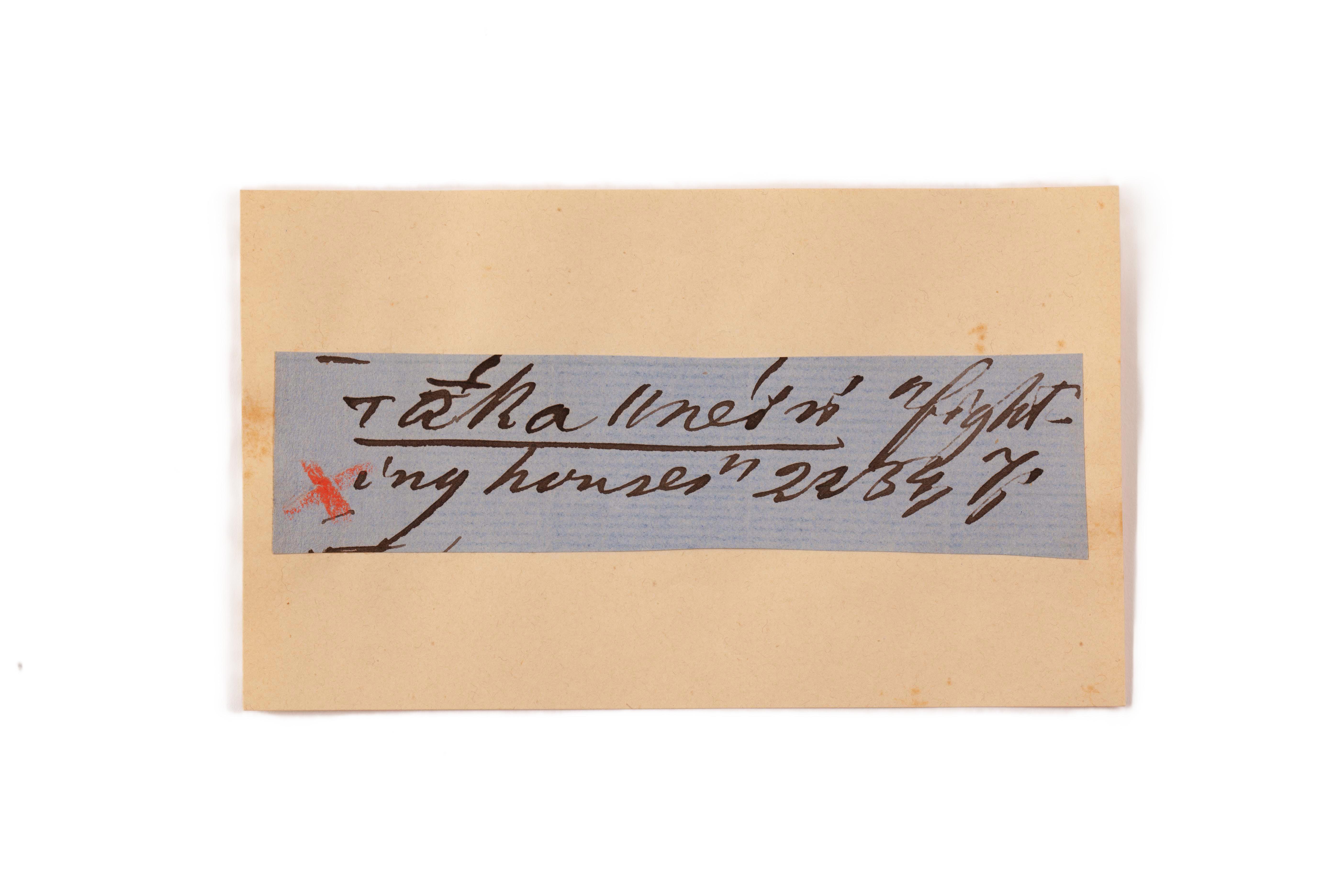 ink on blue paper glued on card