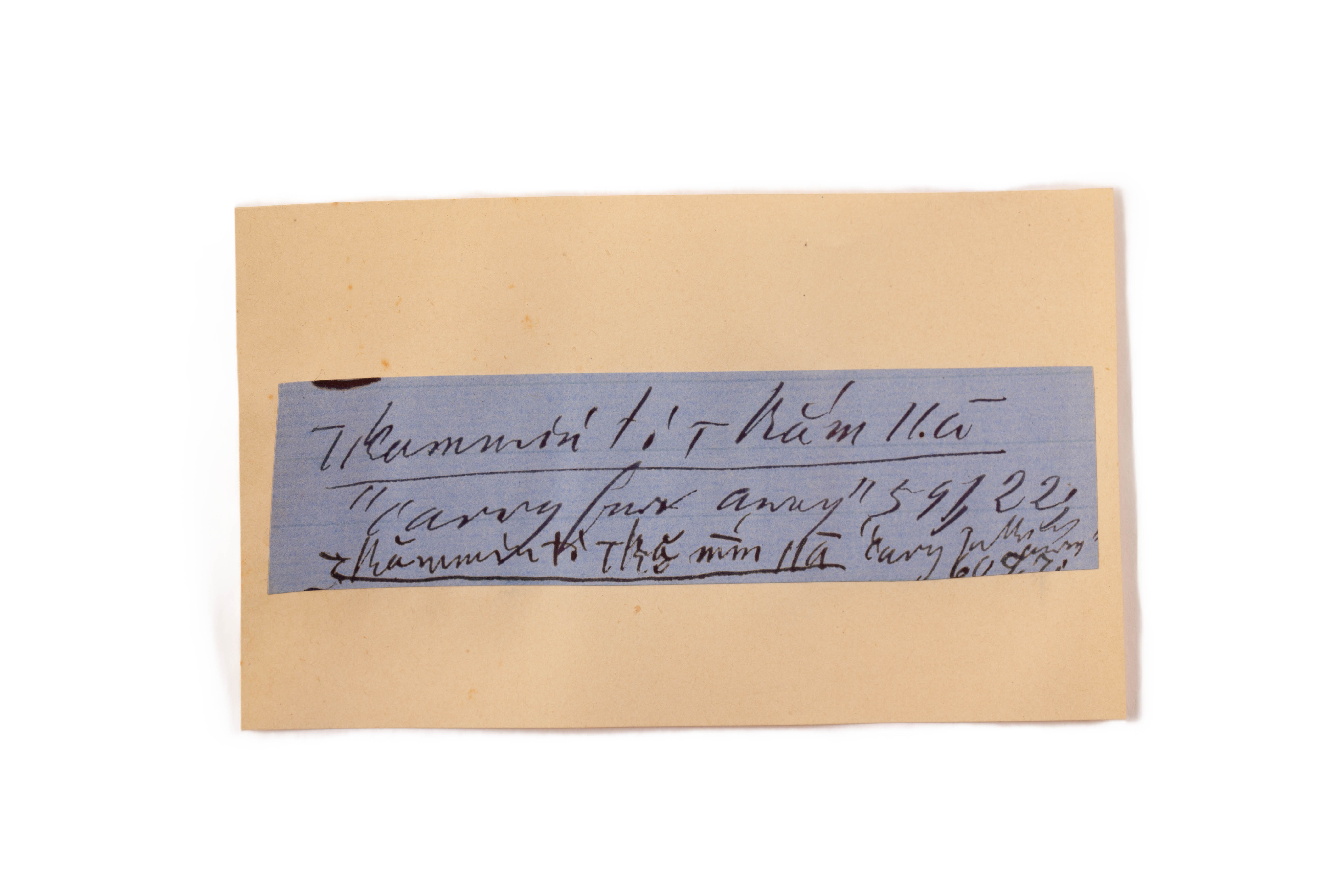 ink on blue paper glued on card