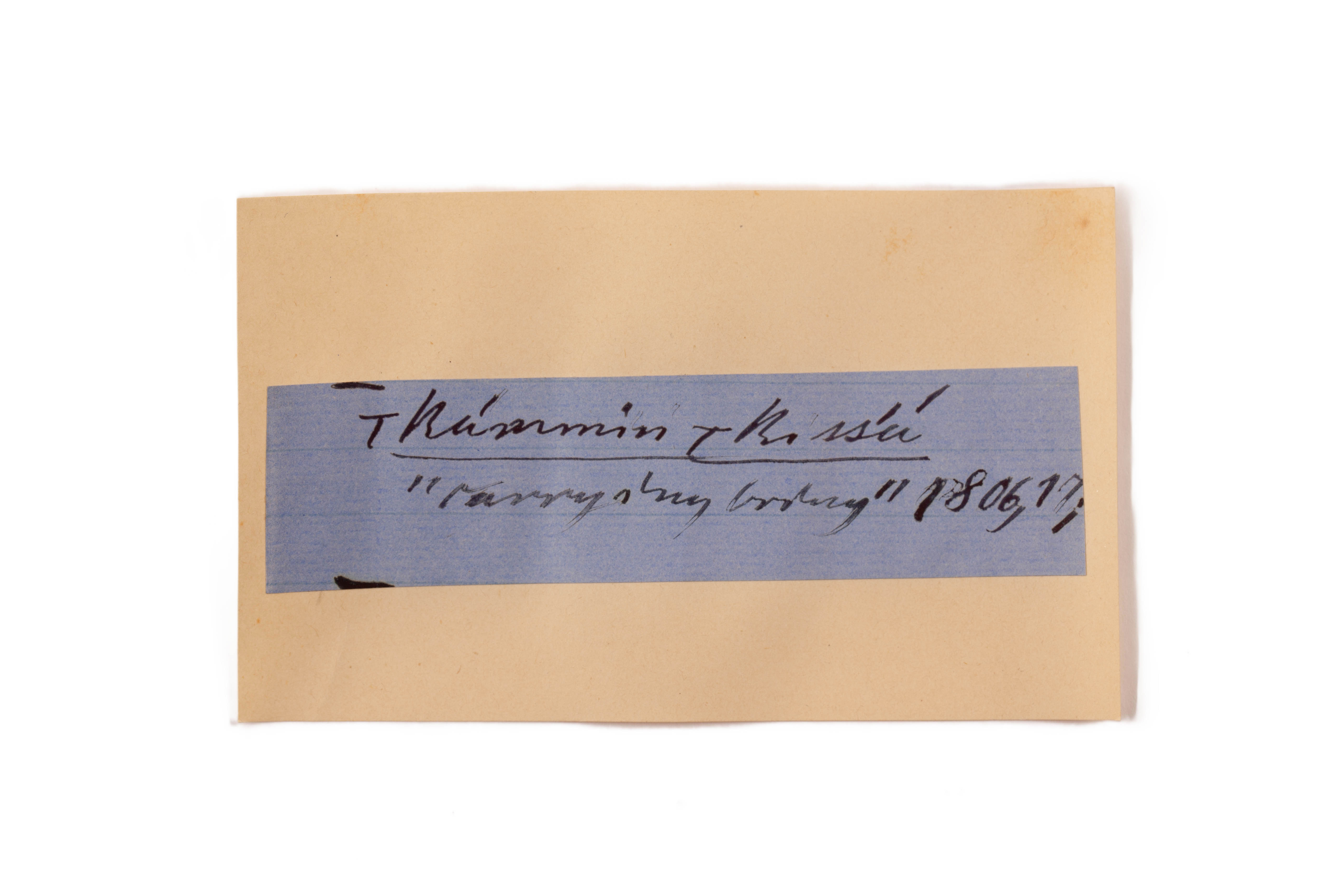 ink on blue paper glued on card