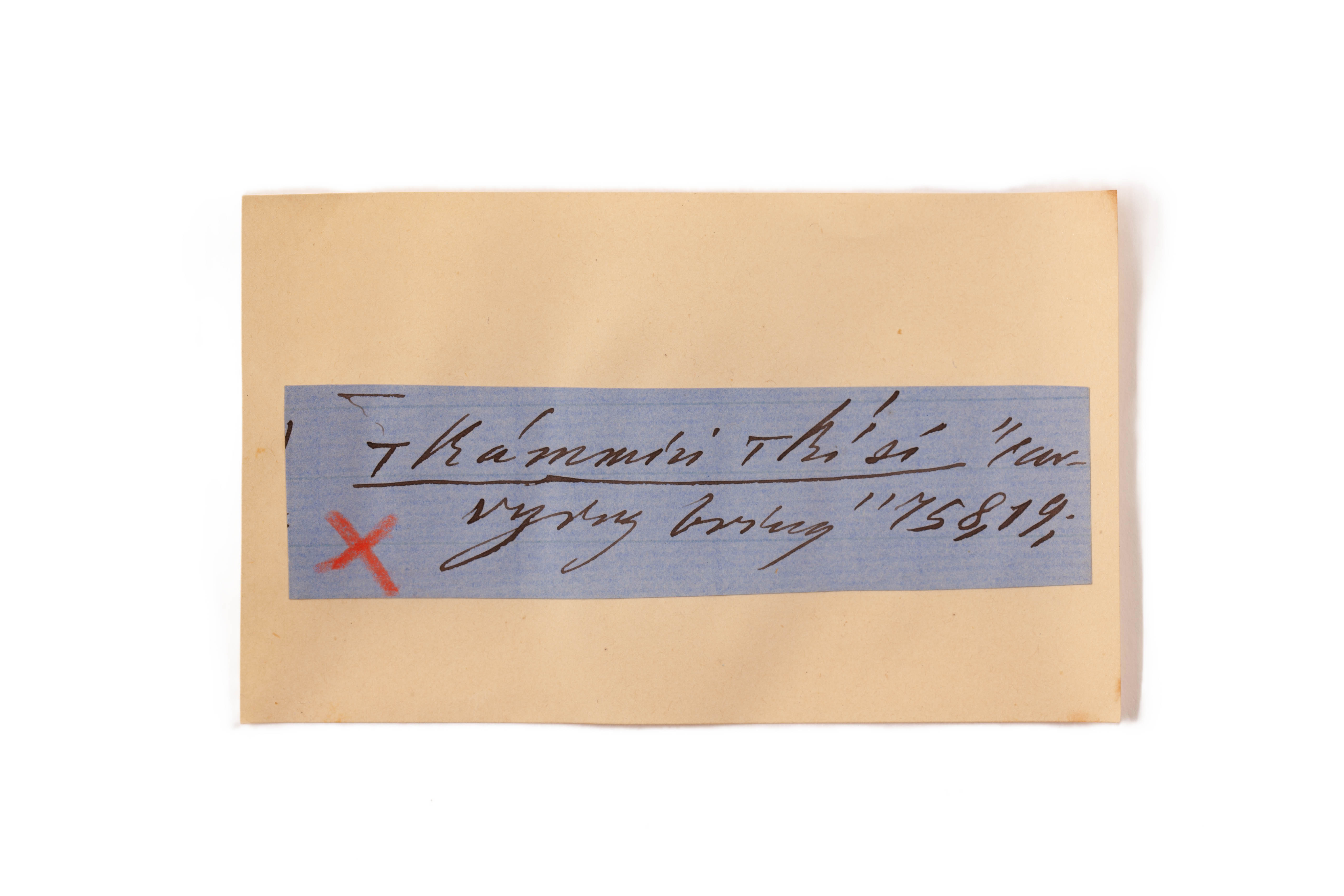 ink on blue paper glued on card