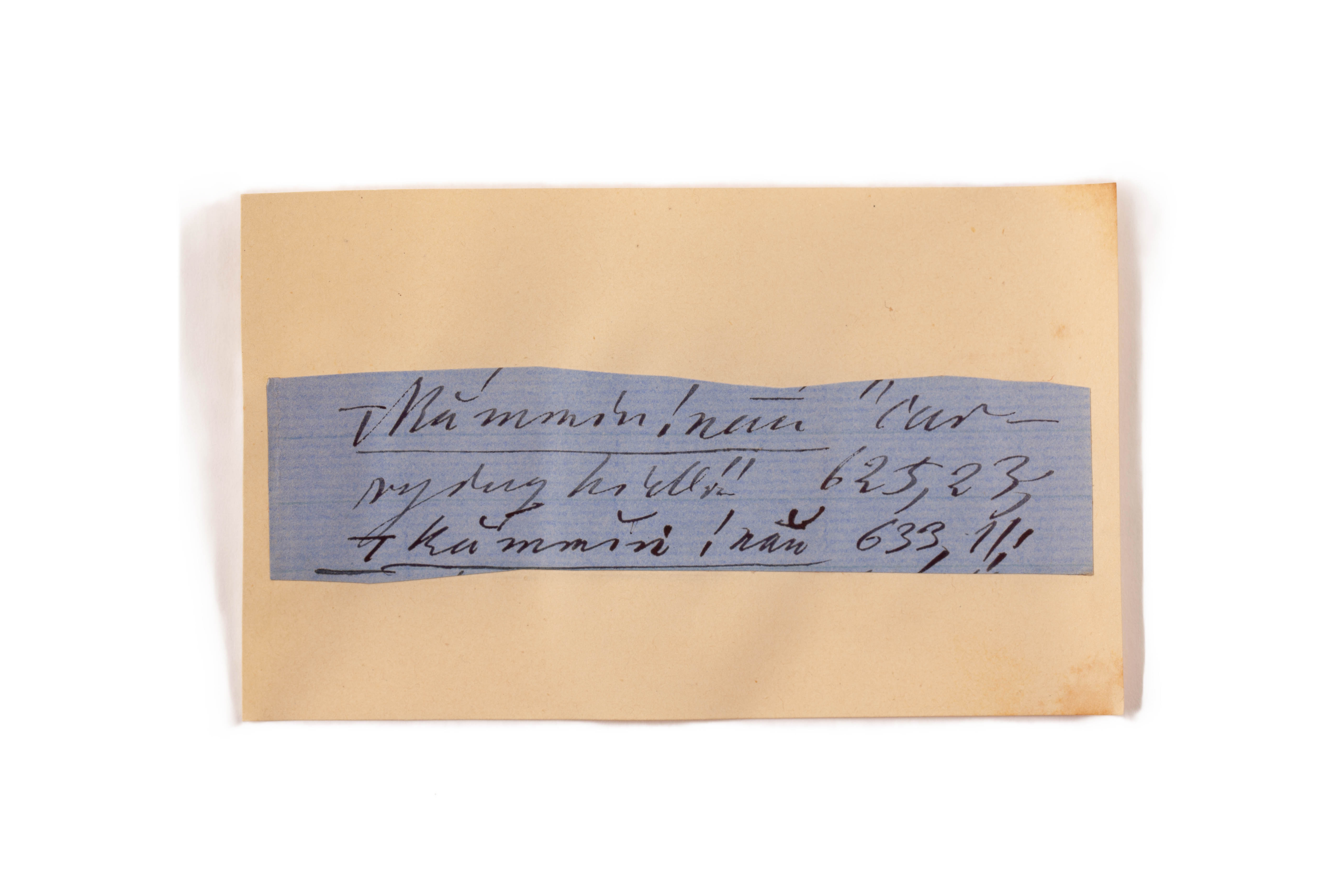 ink on blue paper glued on card