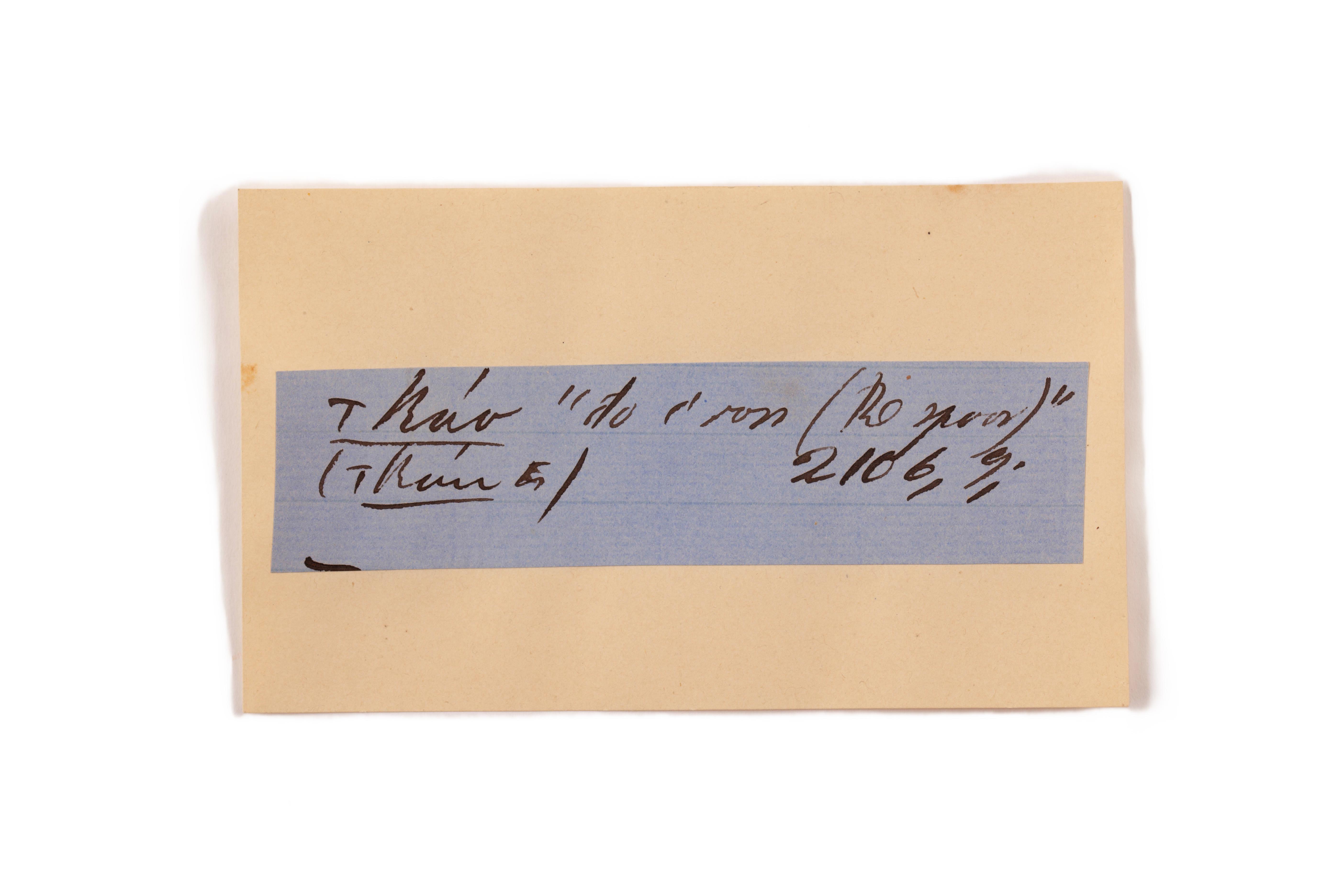 ink on blue paper glued on card