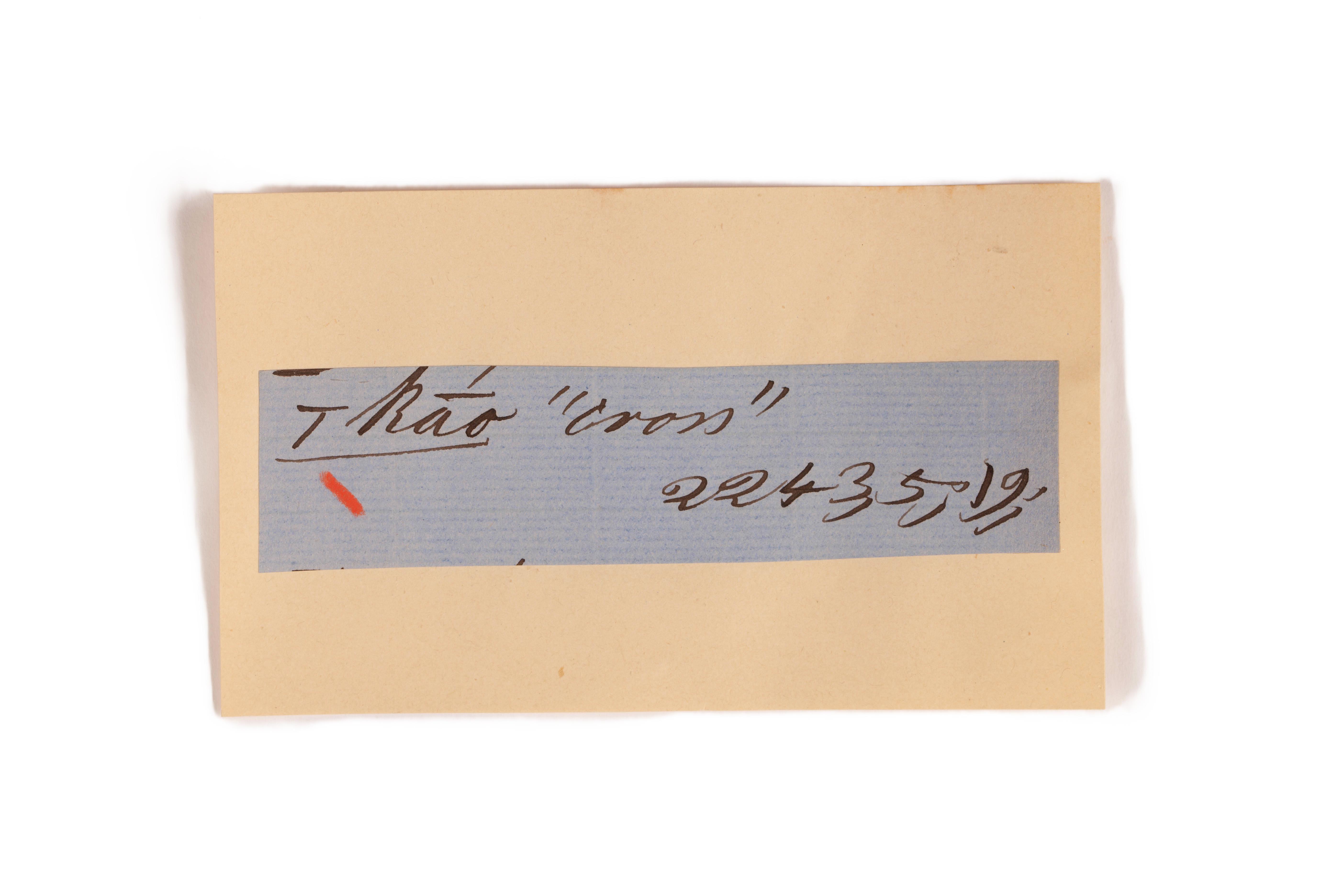 ink on blue paper glued on card