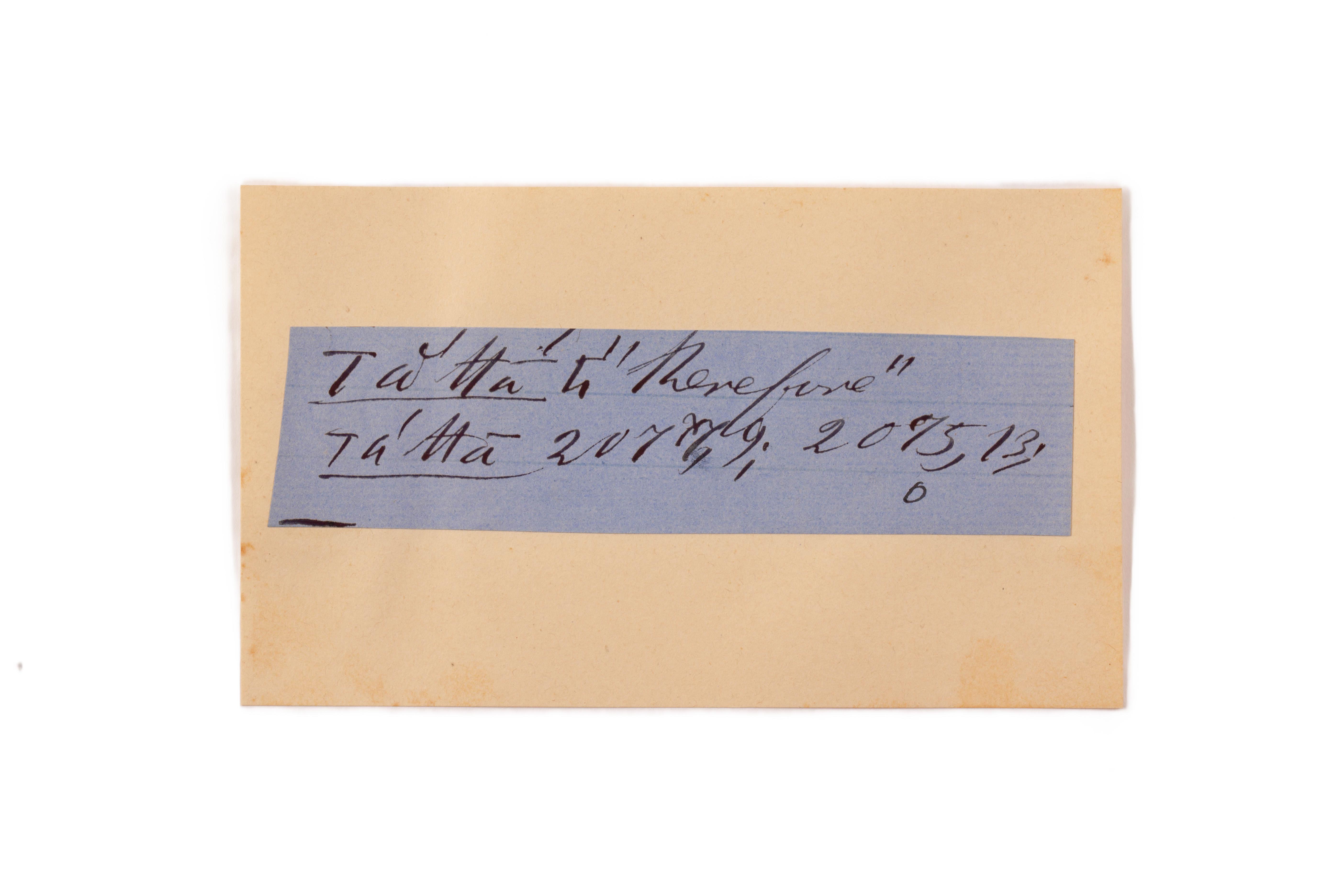 ink on blue paper glued on card
