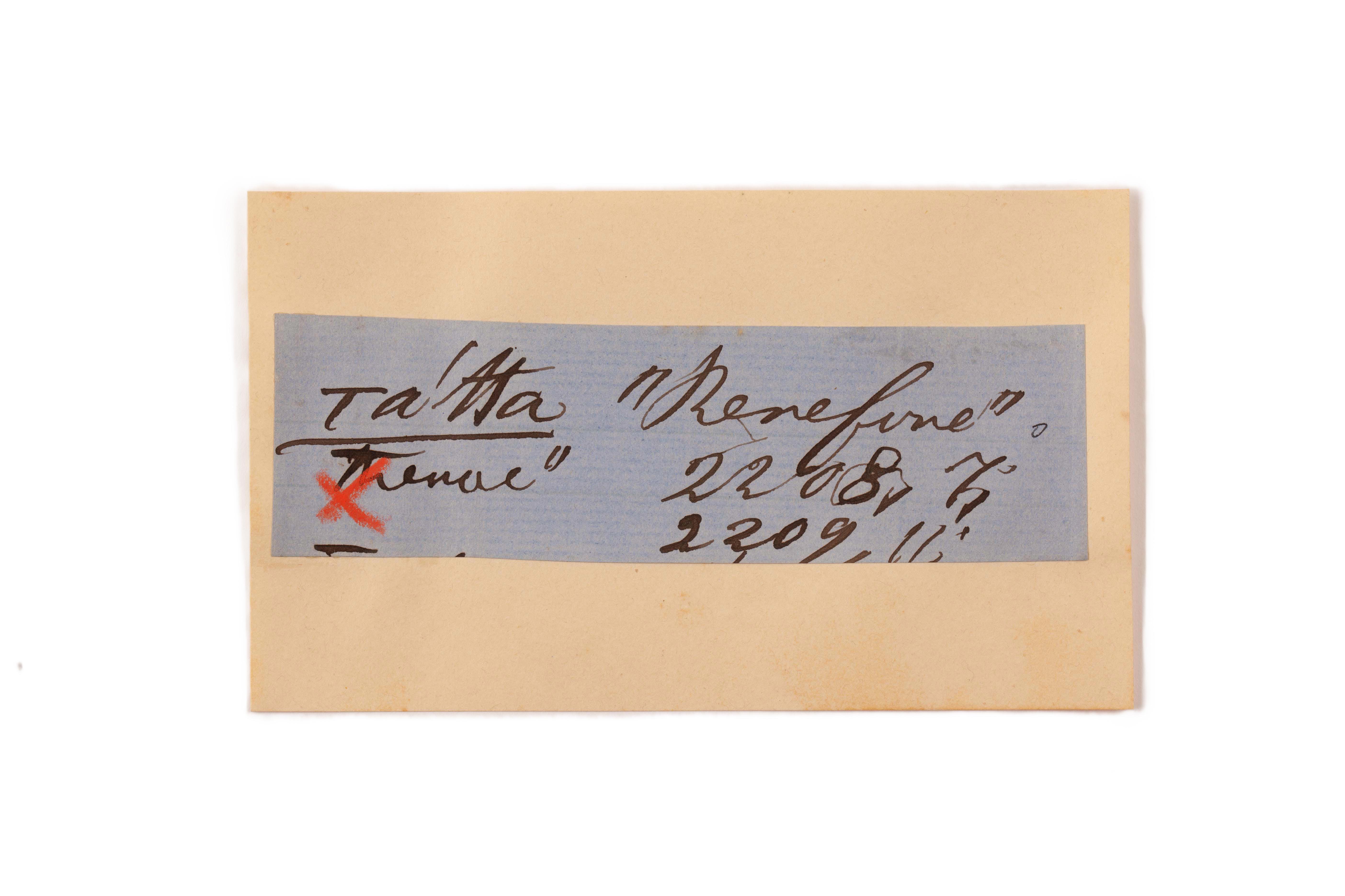 ink on blue paper glued on card
