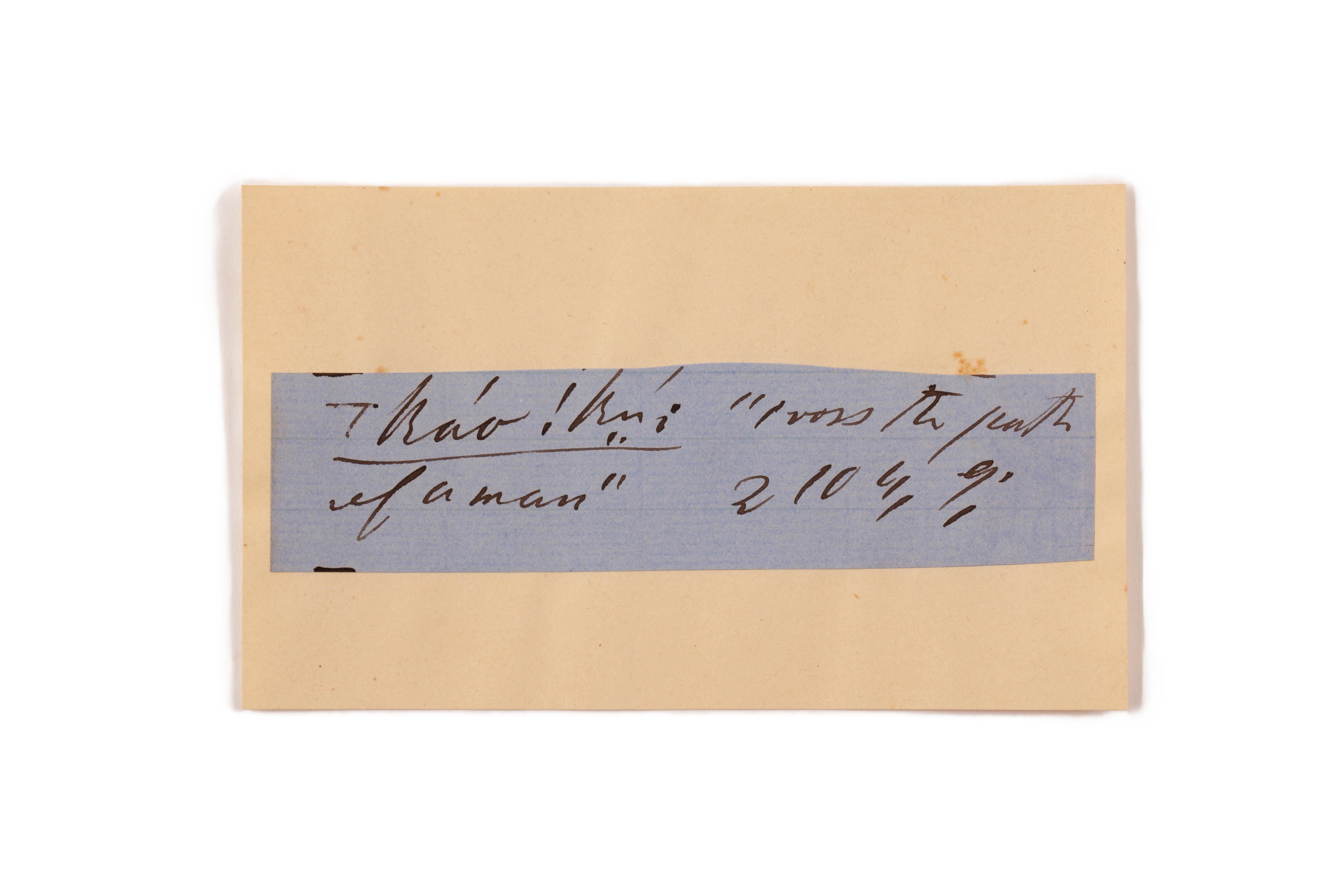 ink on blue paper glued on card