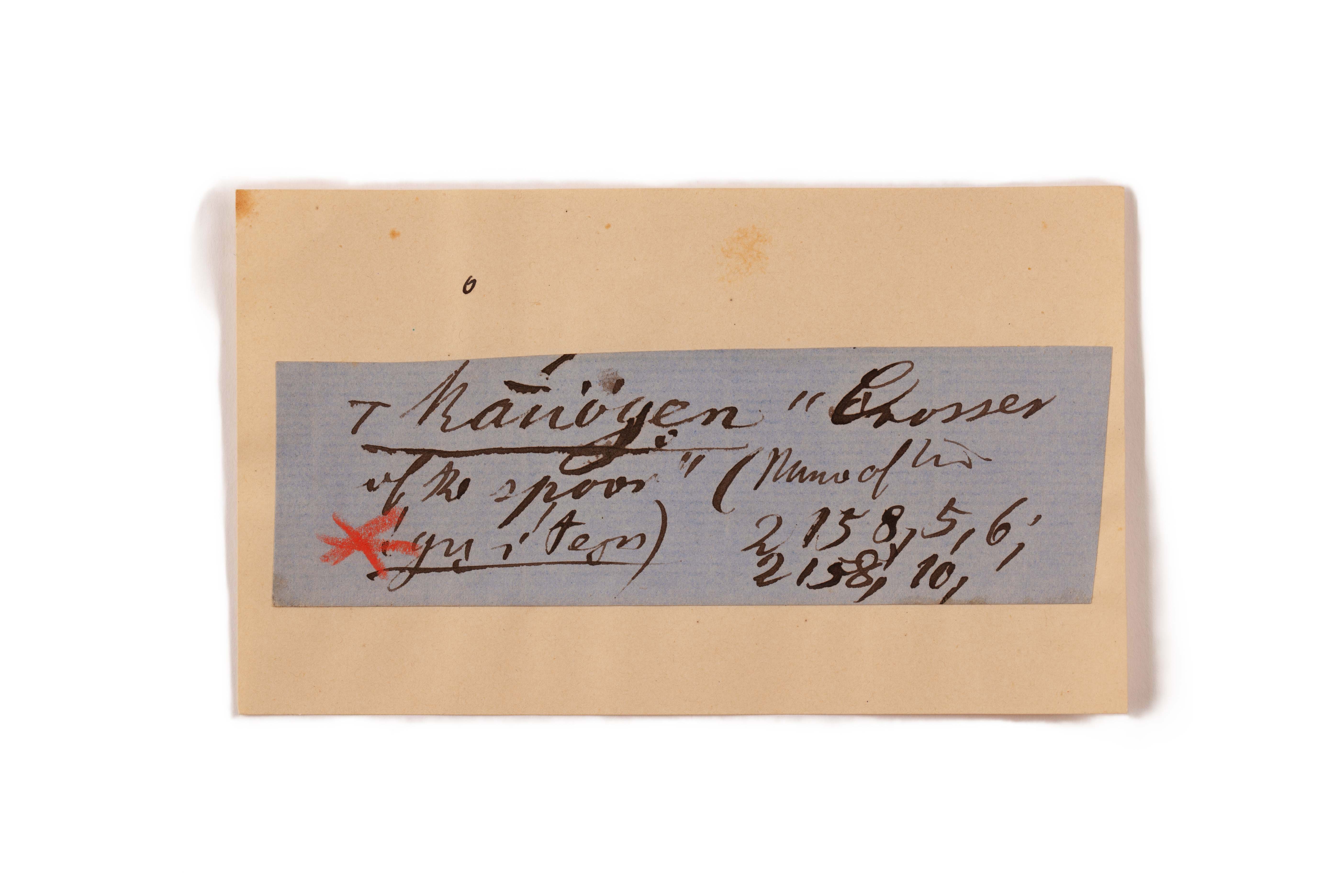 ink on blue paper glued on card
