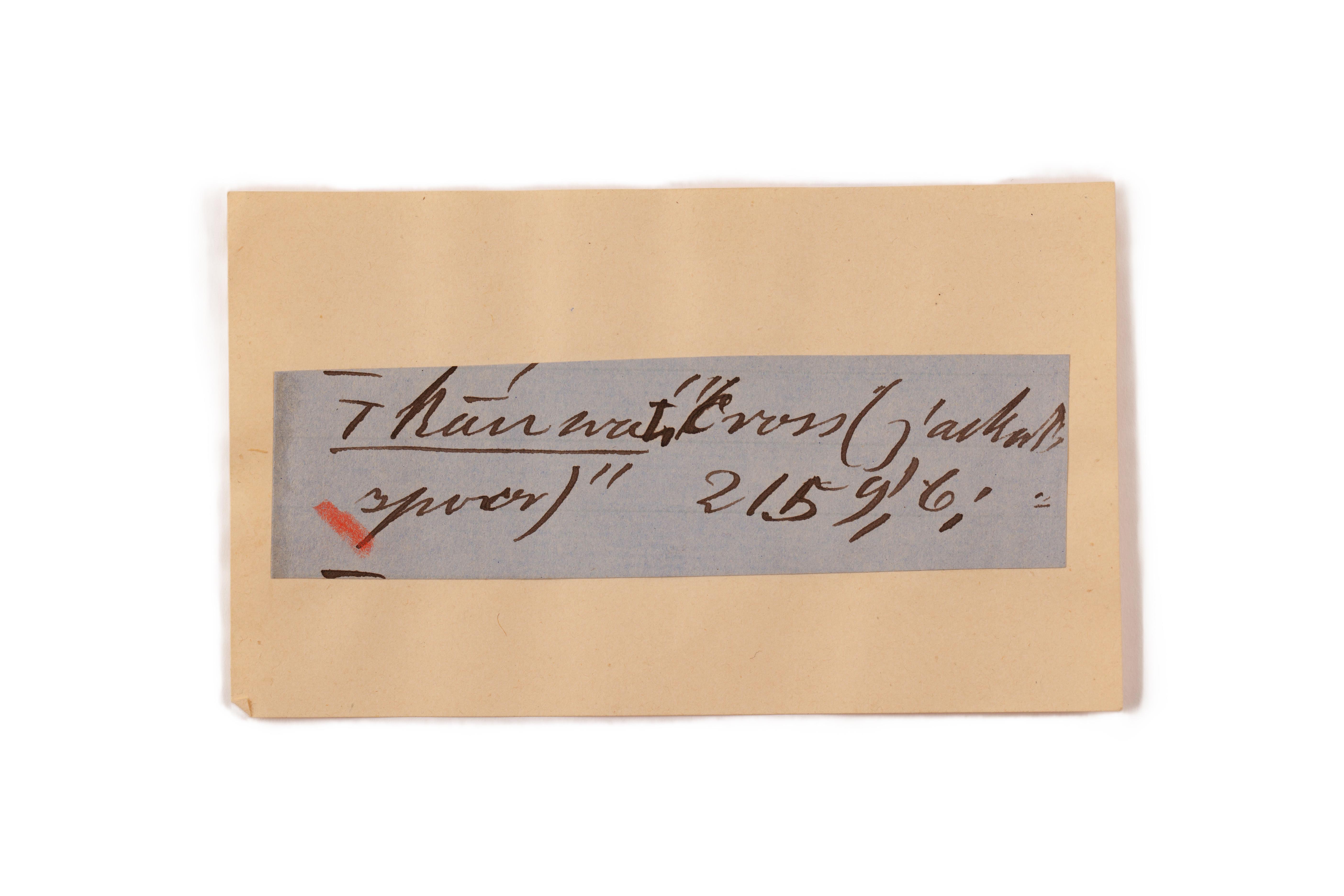 ink on blue paper glued on card