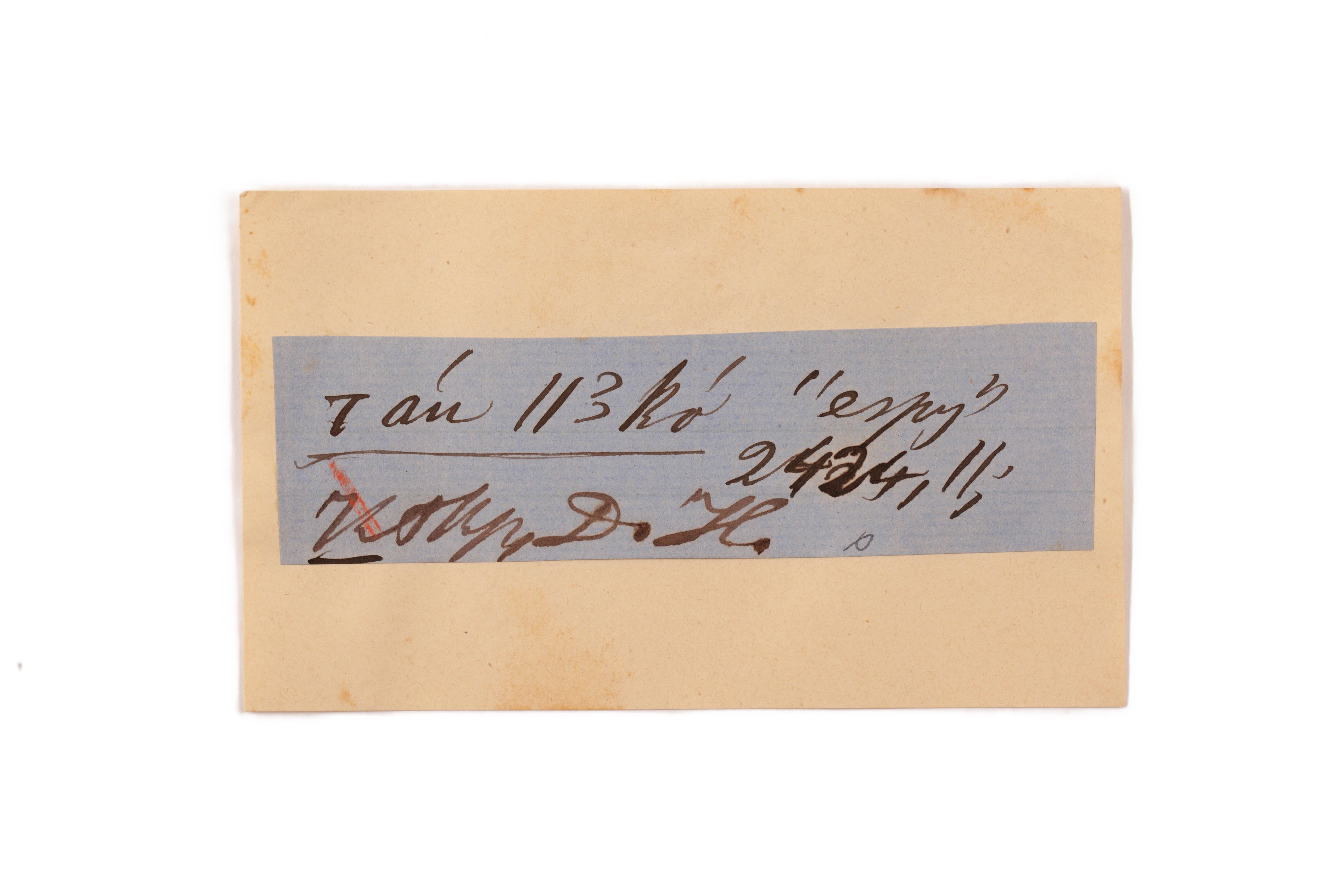 ink on blue paper glued on card