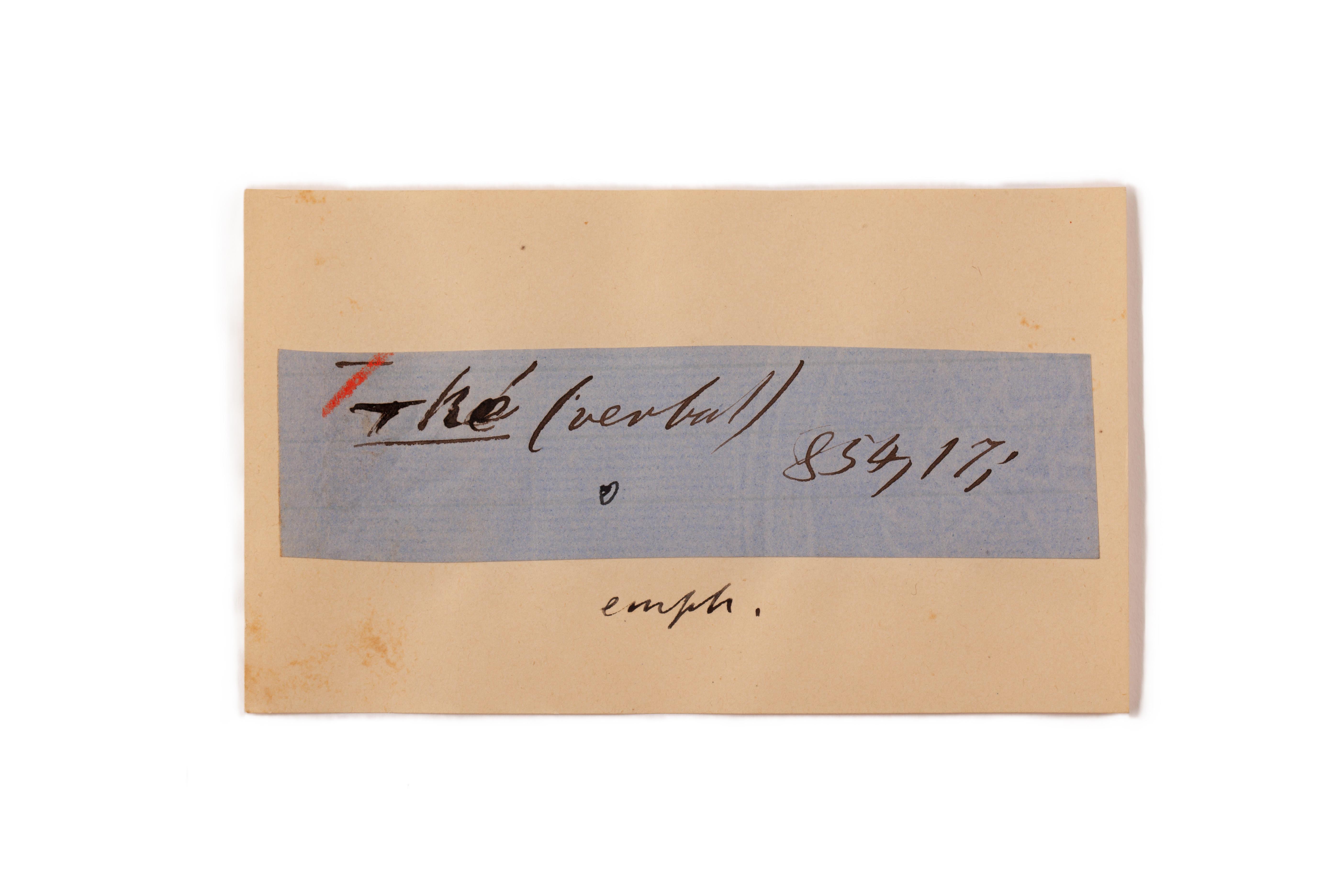ink on blue paper glued on card