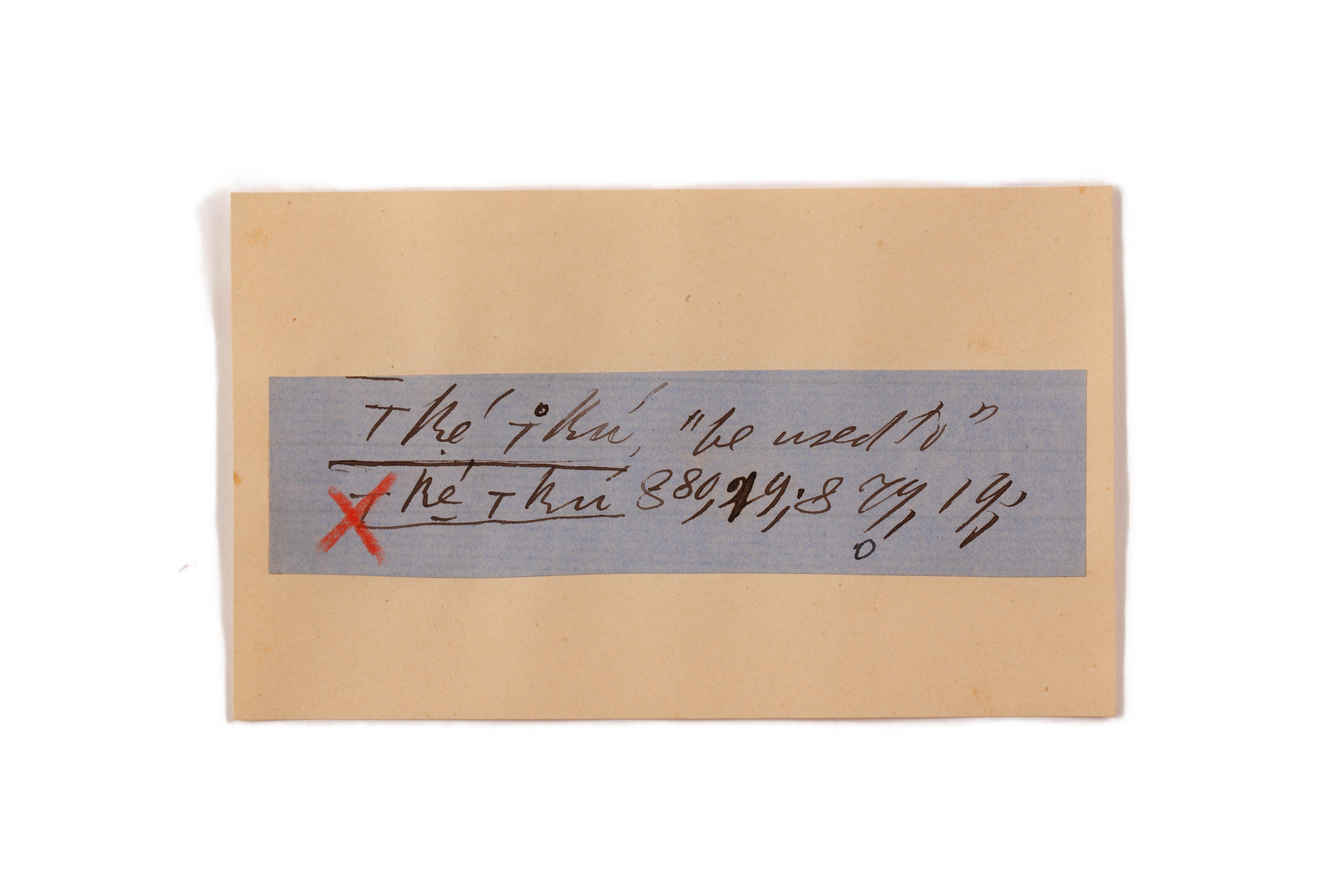 ink on blue paper glued on card