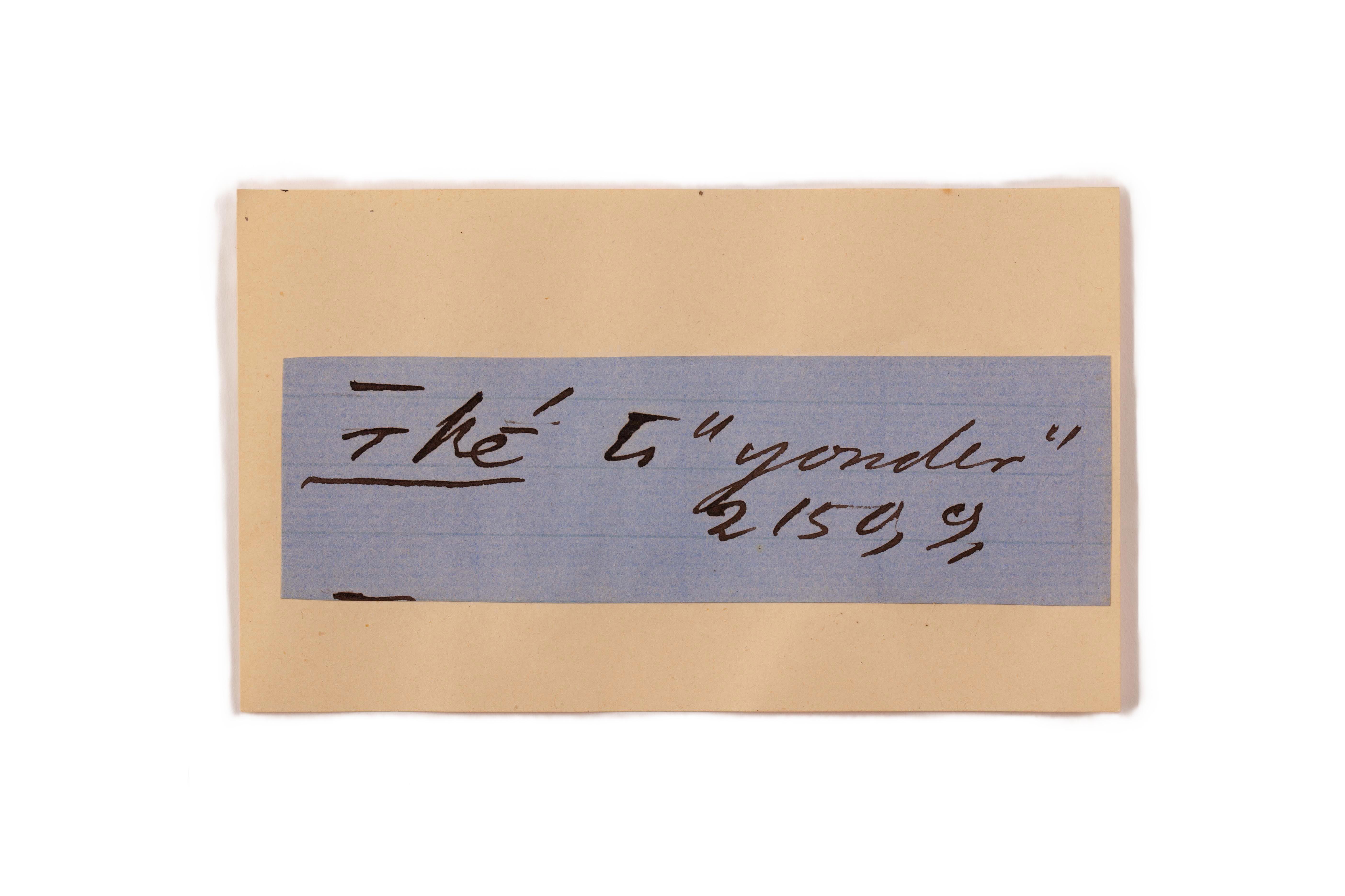 ink on blue paper glued on card