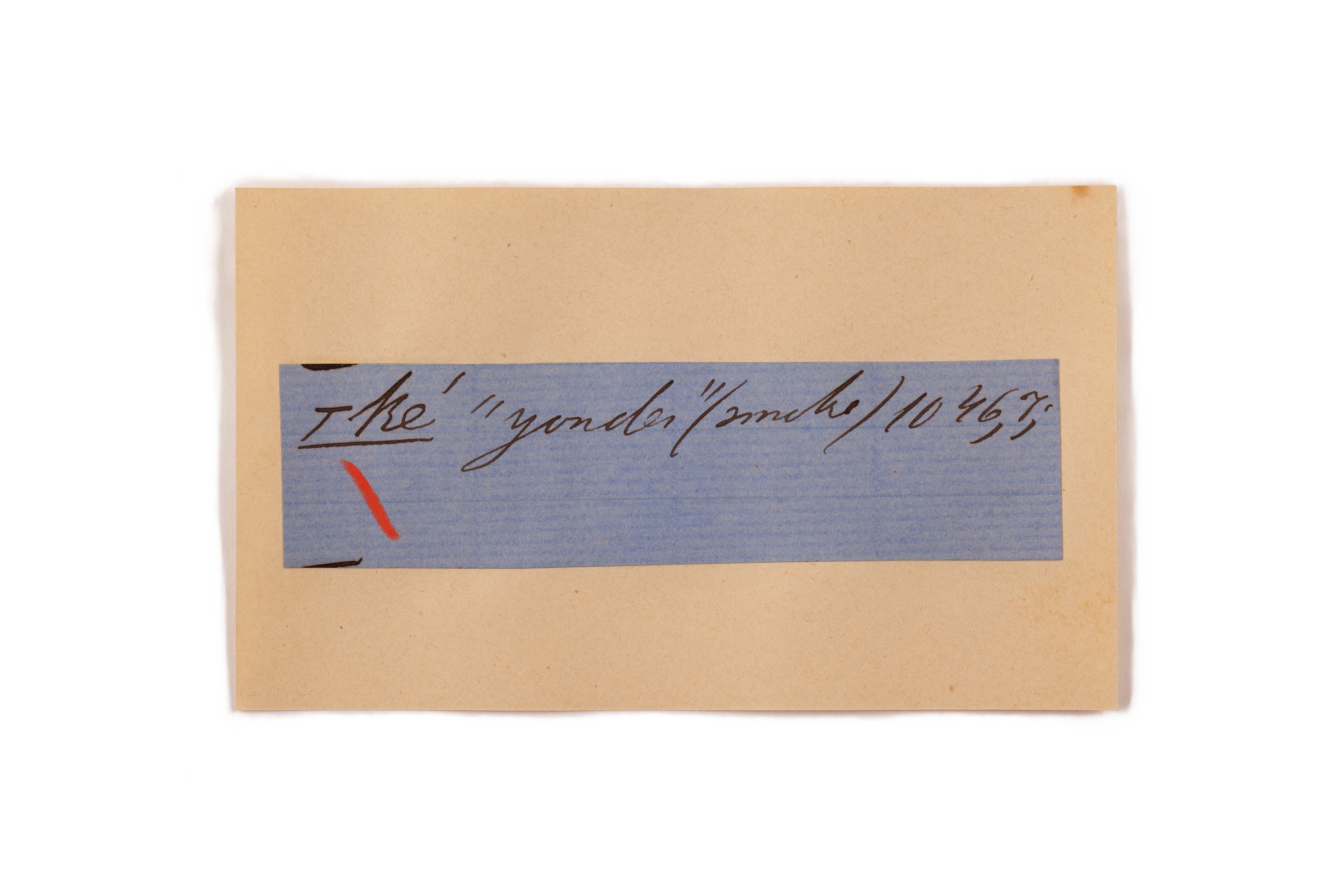 ink on blue paper glued on card