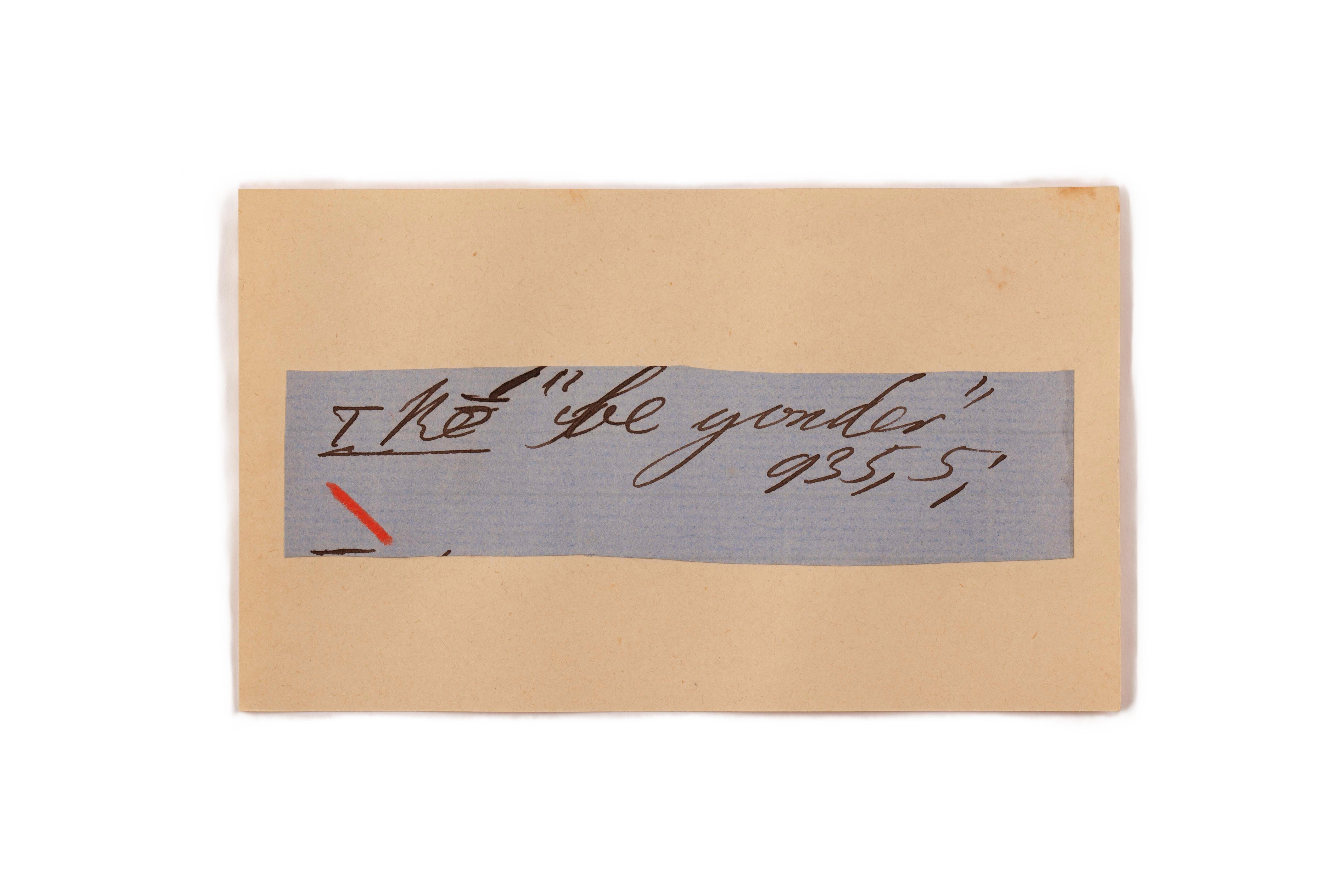 ink on blue paper glued on card