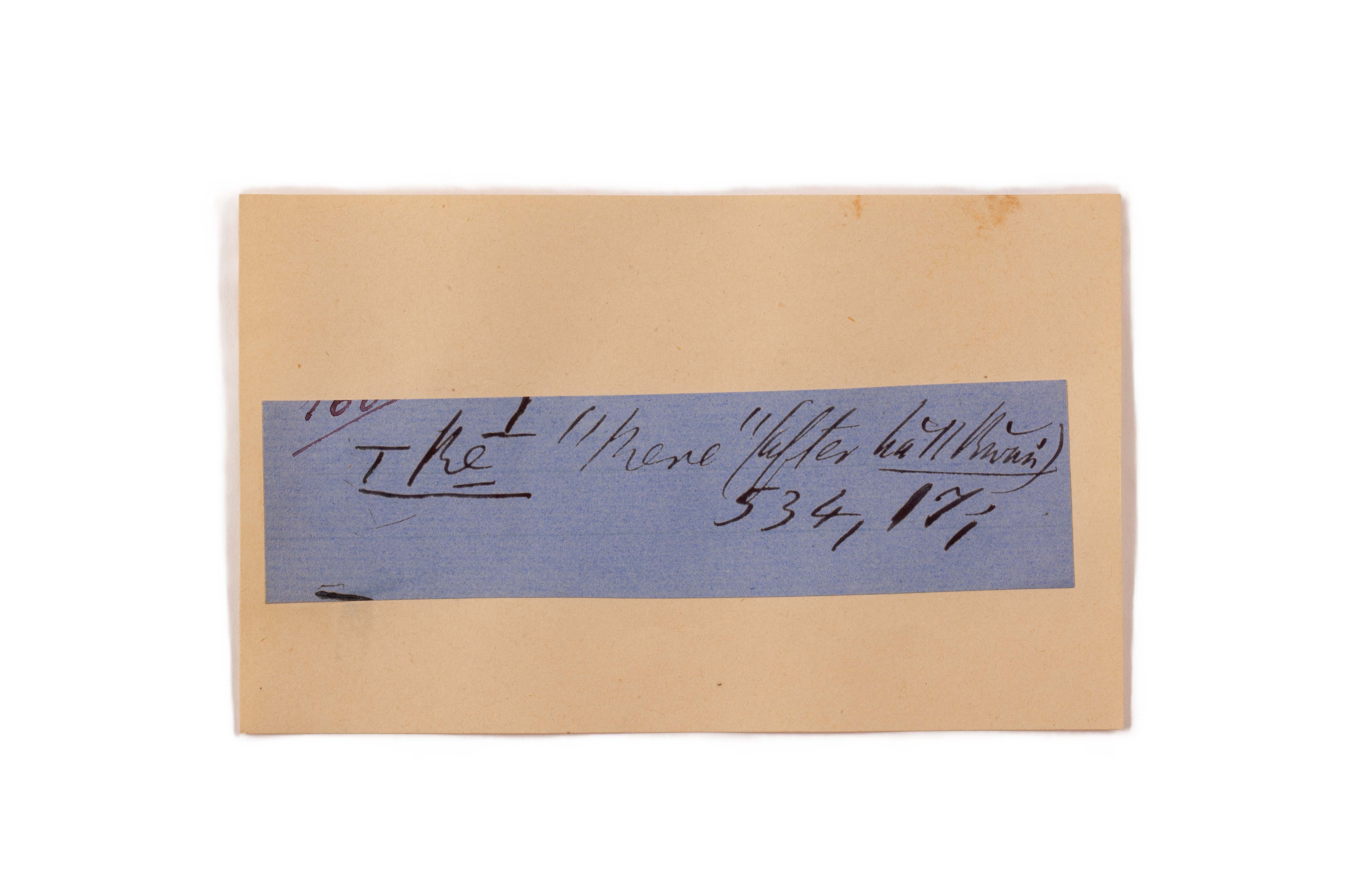 ink on blue paper glued on card