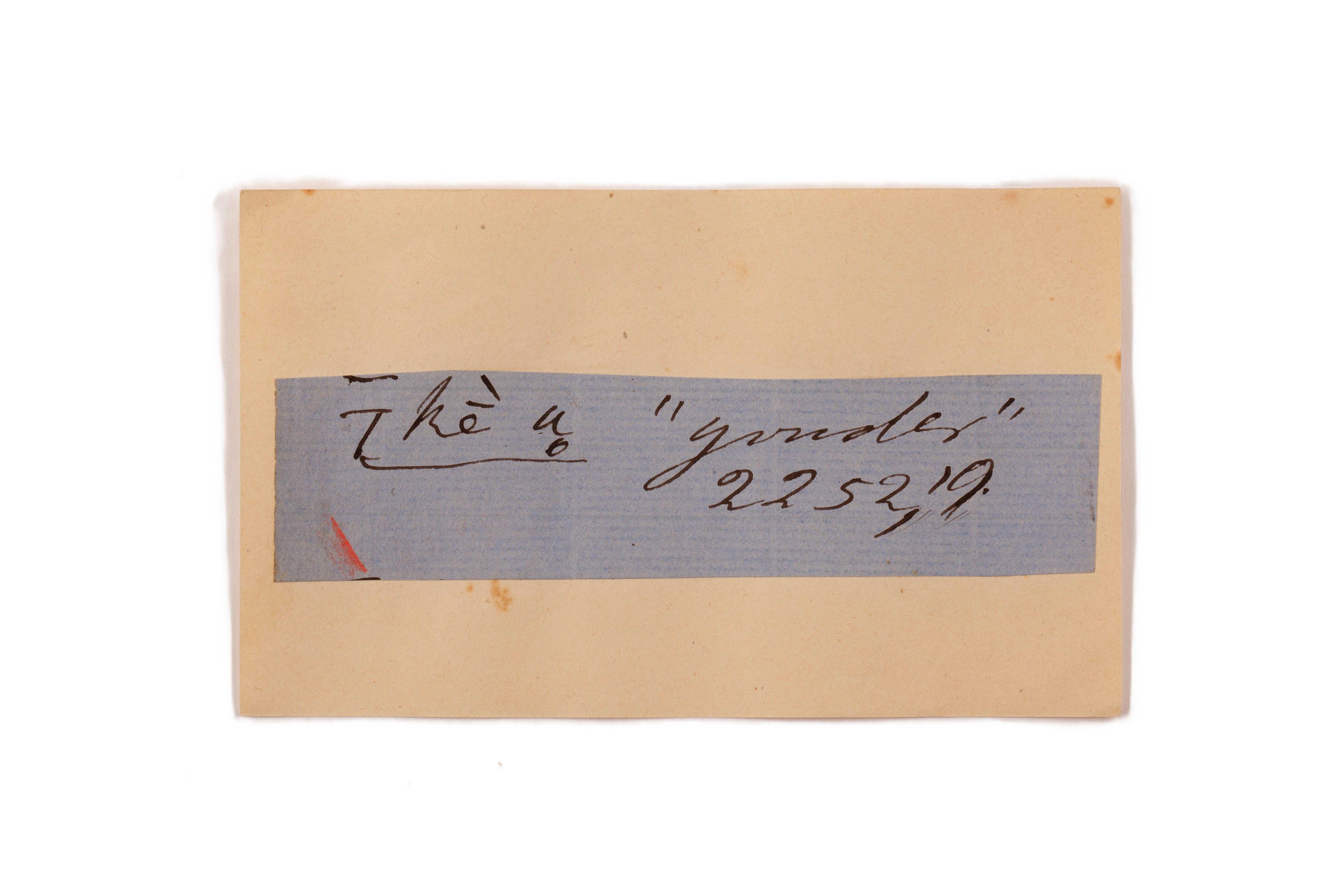 ink on blue paper glued on card