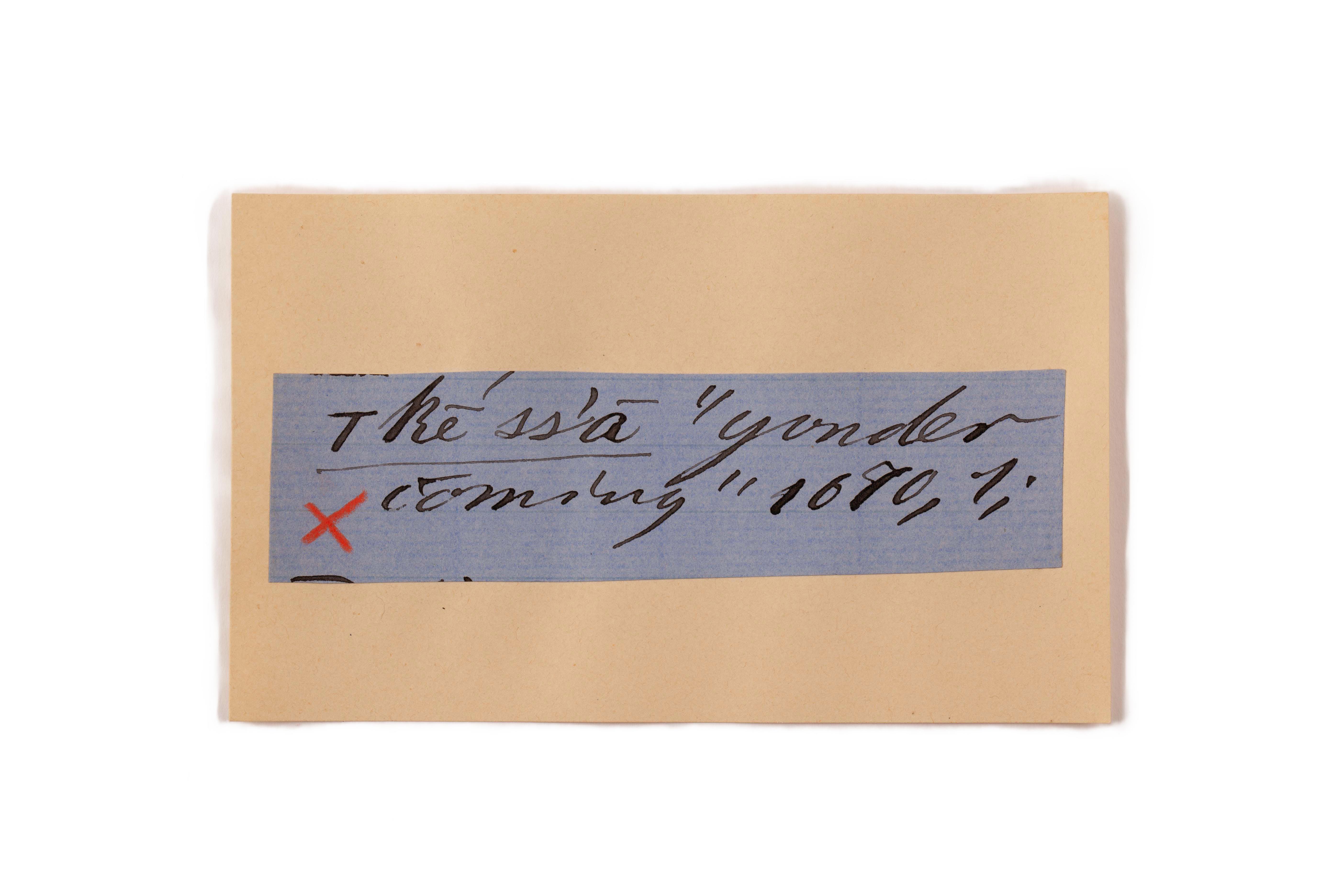 ink on blue paper glued on card