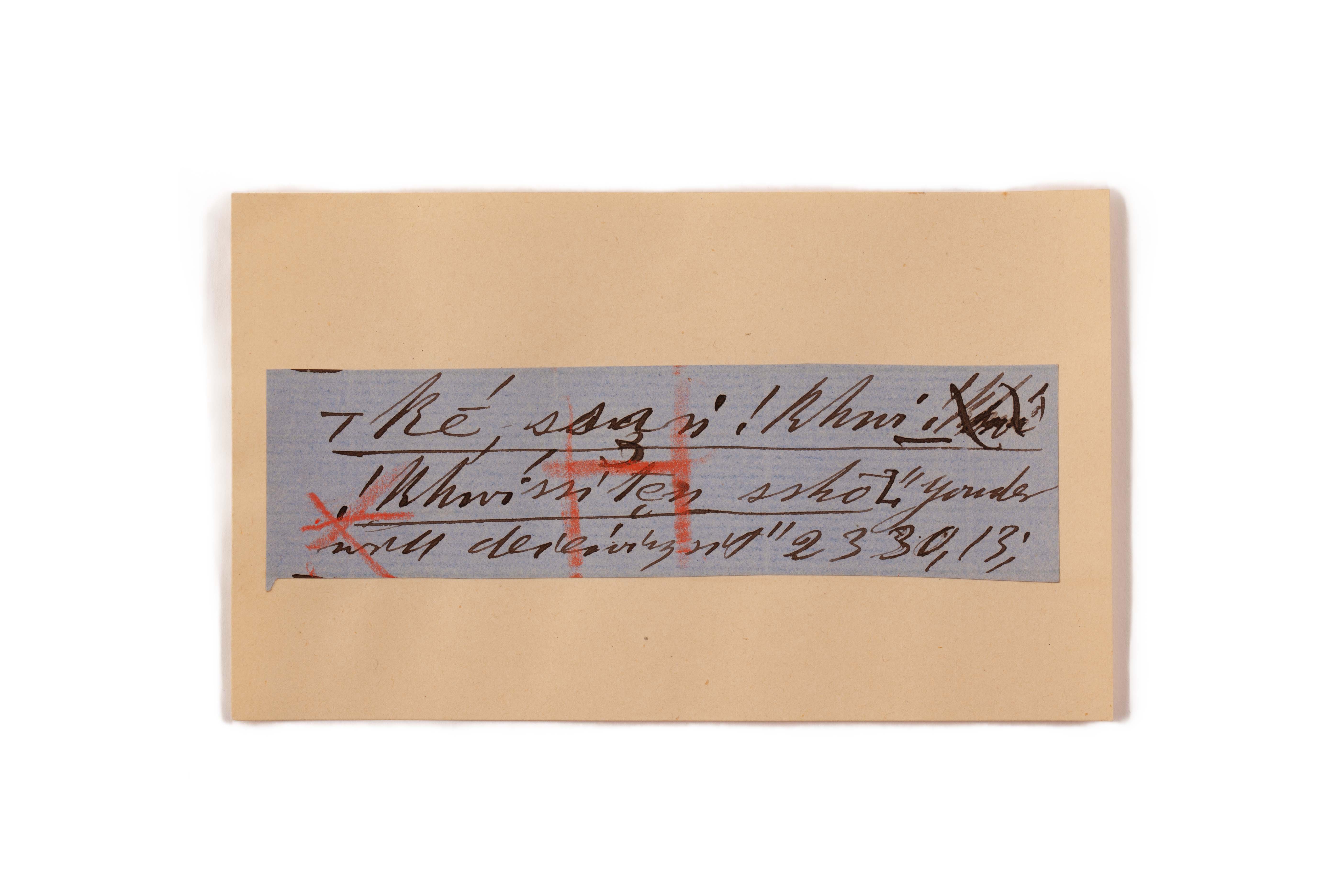 ink on blue paper glued on card