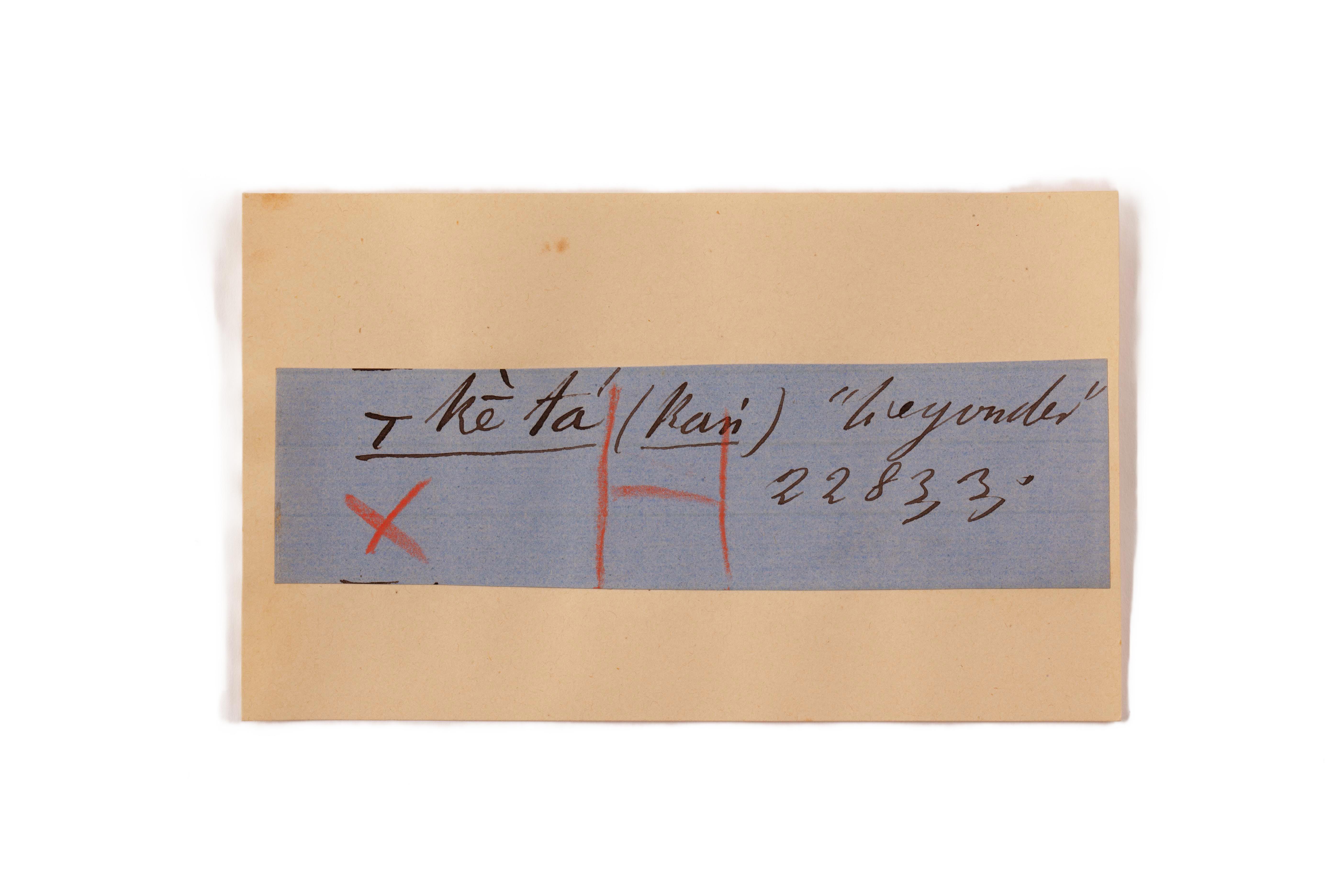 ink on blue paper glued on card