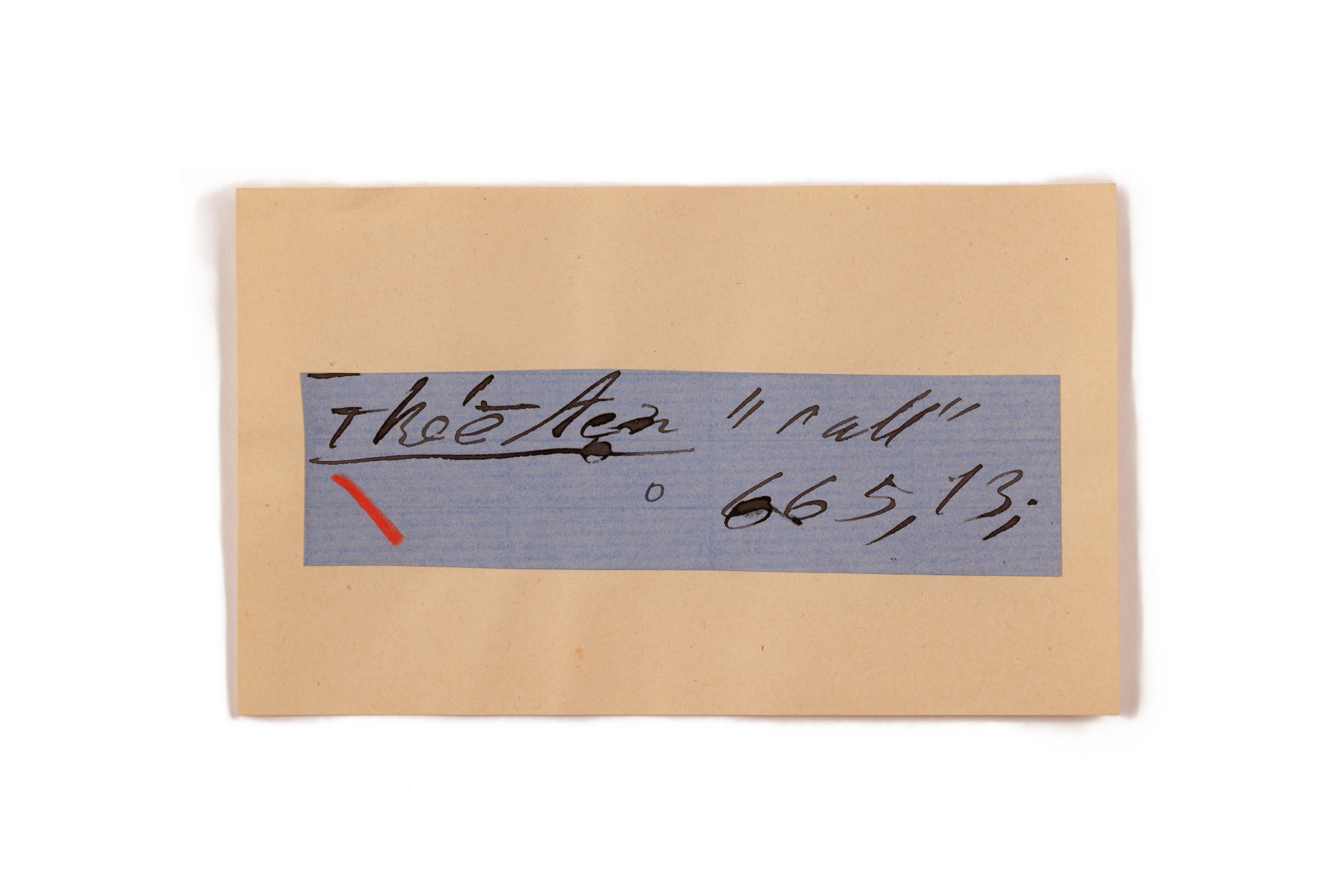 ink on blue paper glued on card