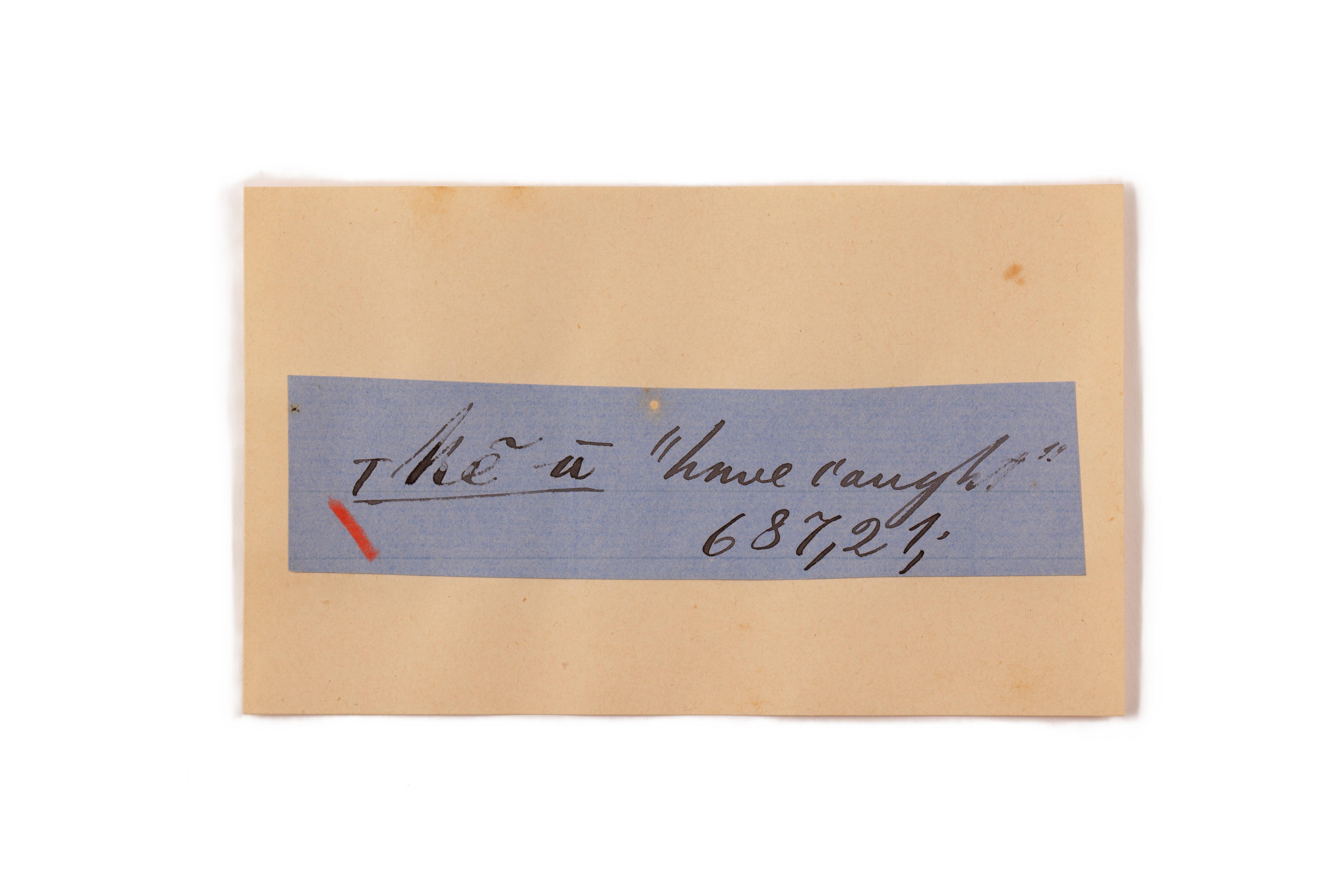 ink on blue paper glued on card