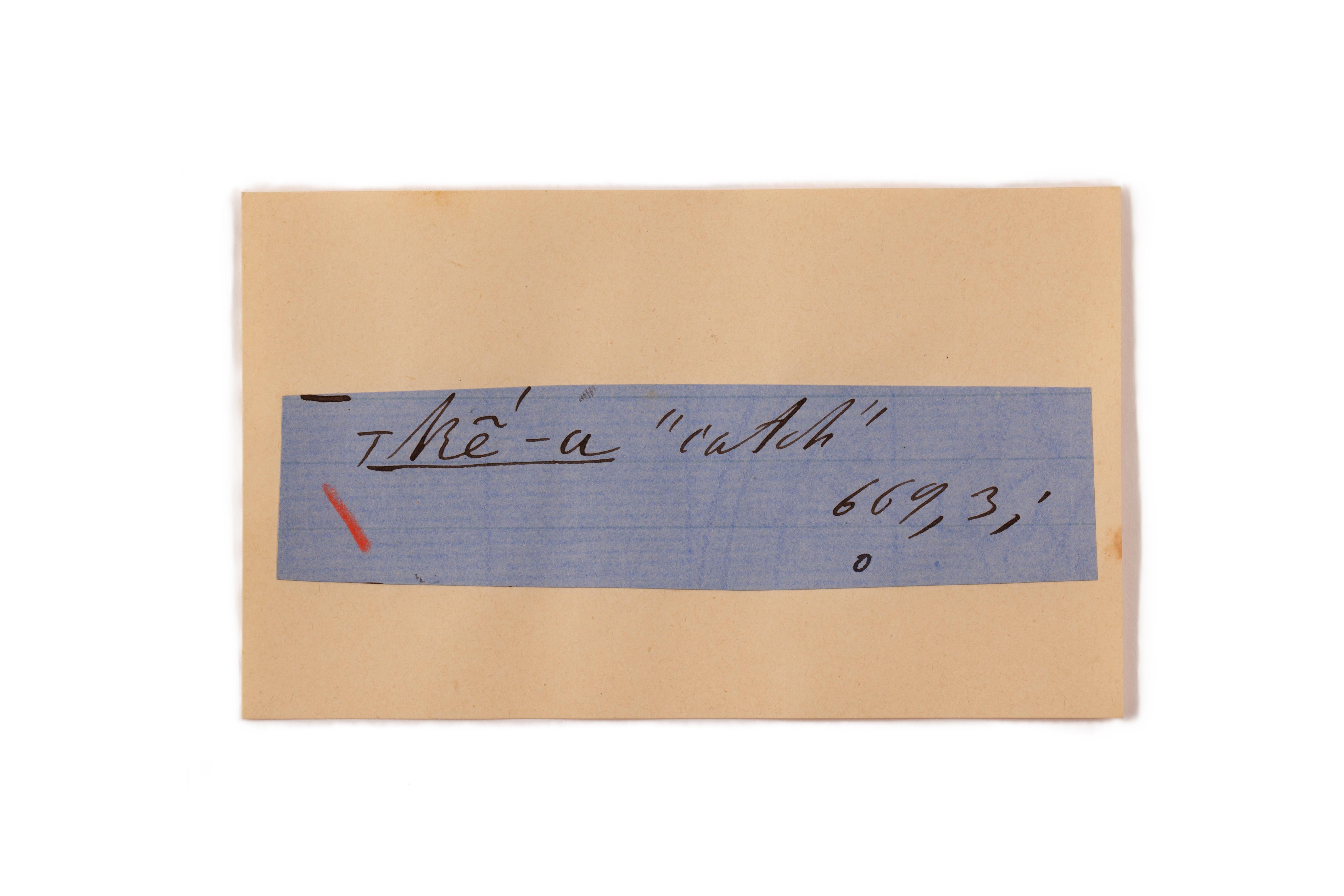 ink on blue paper glued on card