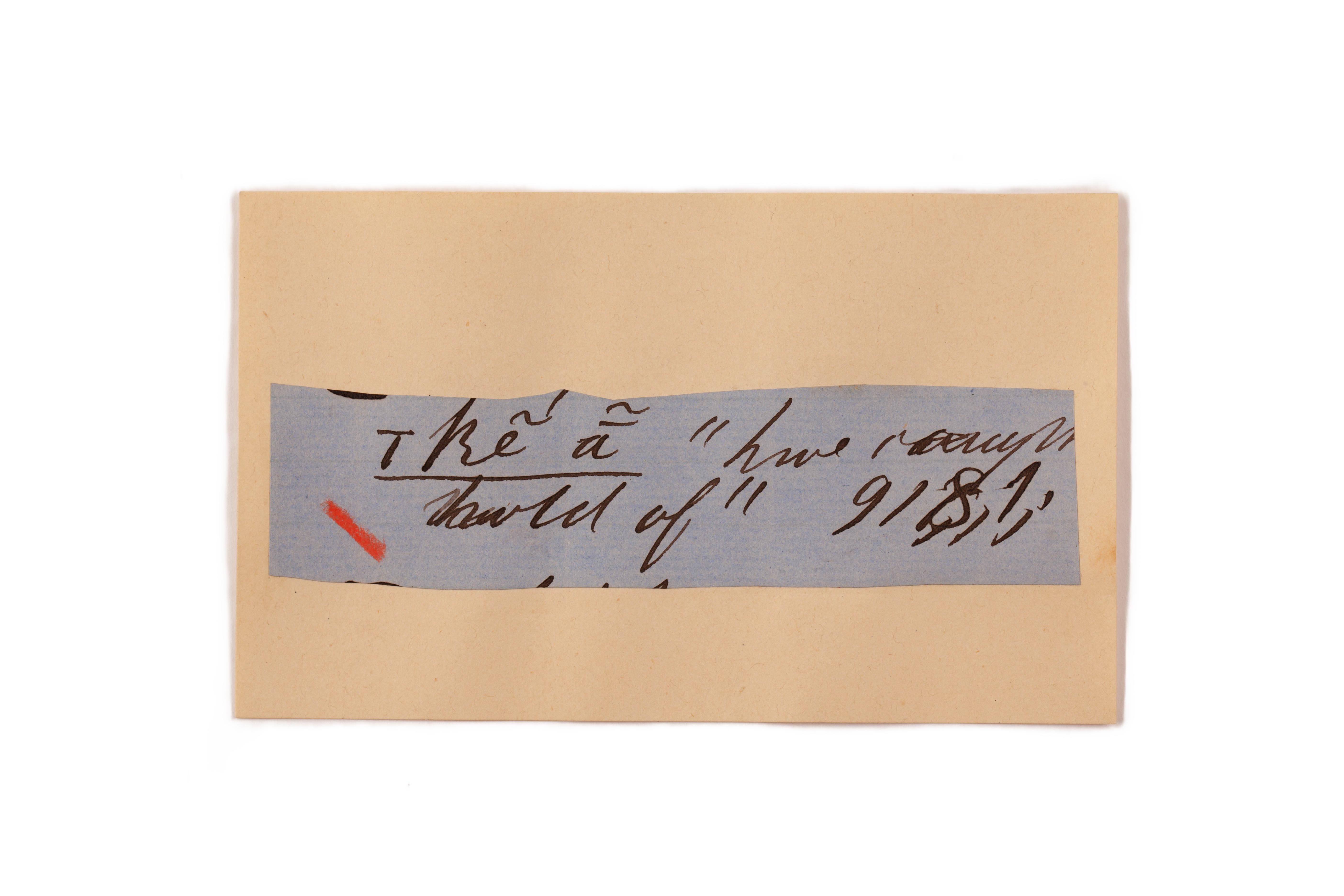 ink on blue paper glued on card