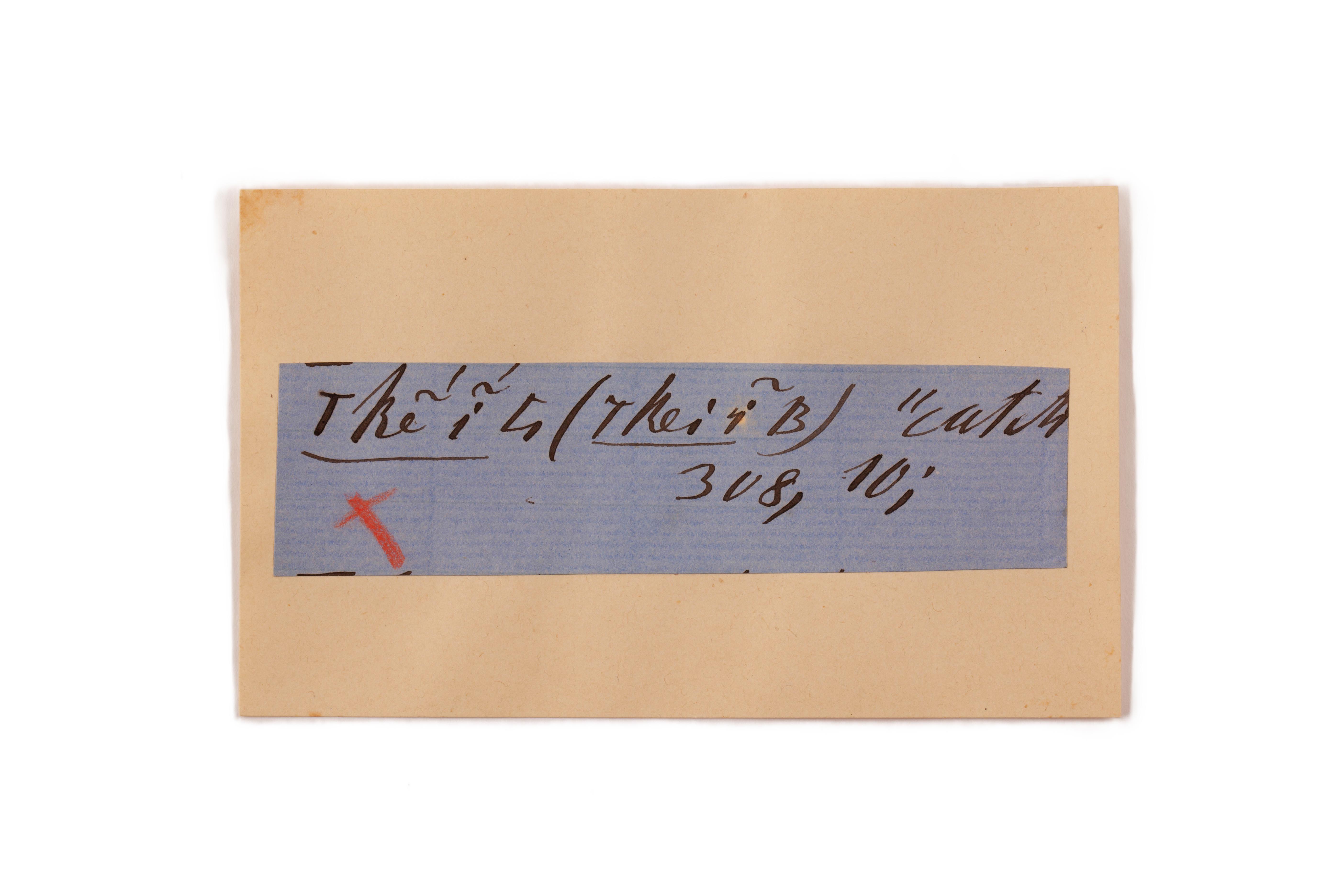 ink on blue paper glued on card