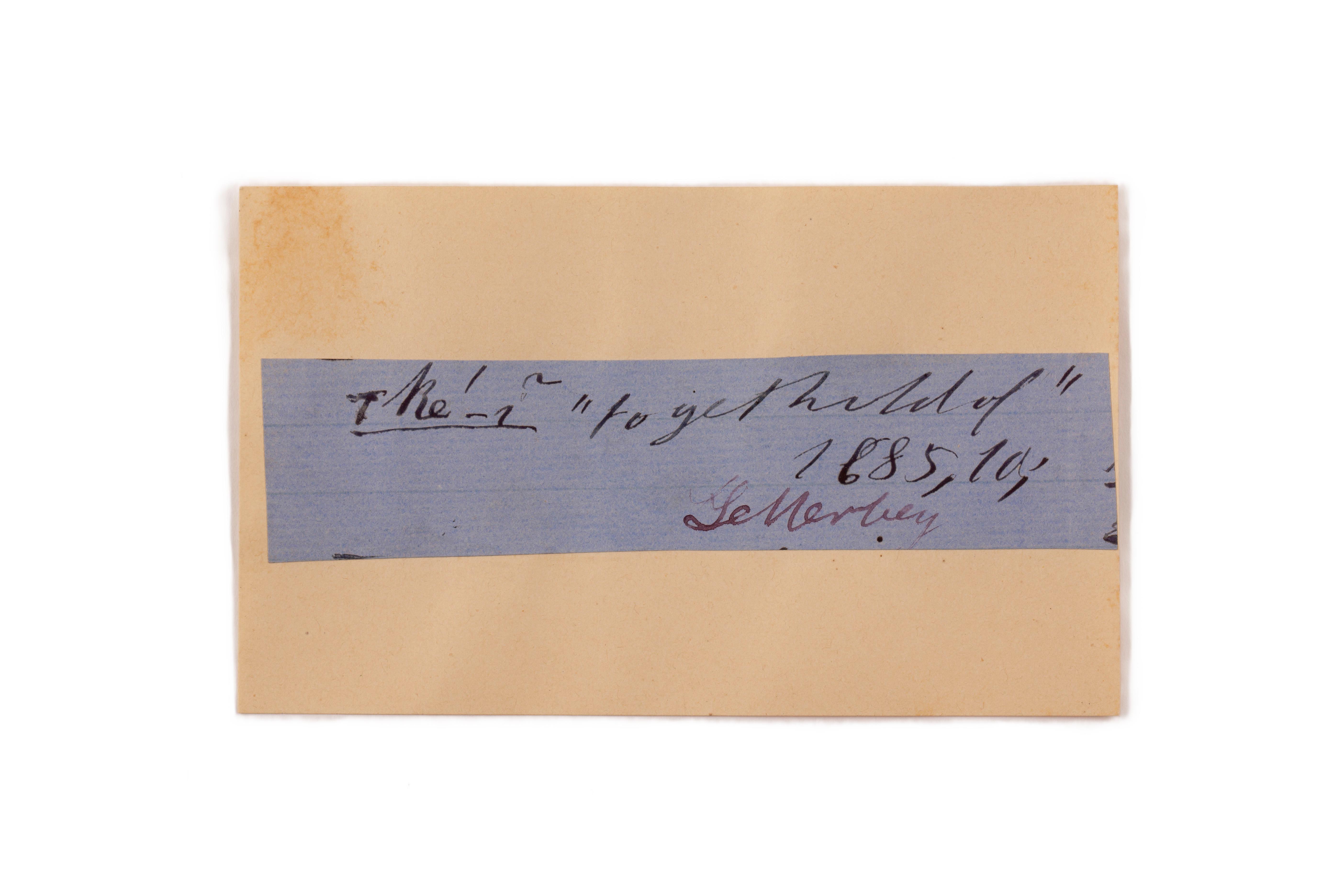 ink on blue paper glued on card