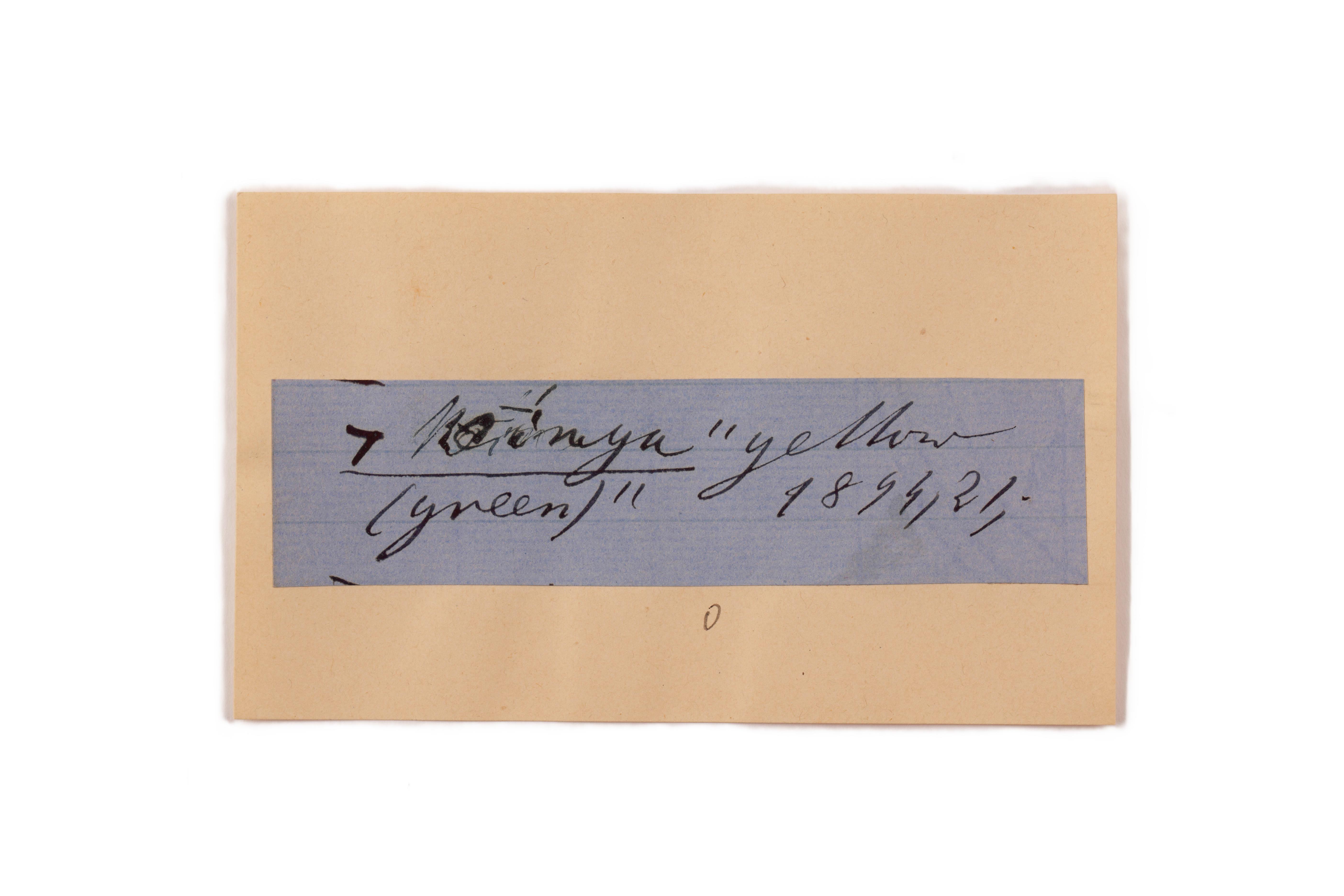 ink on blue paper glued on card