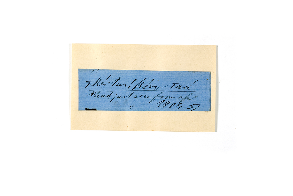 ink on blue paper glued on card