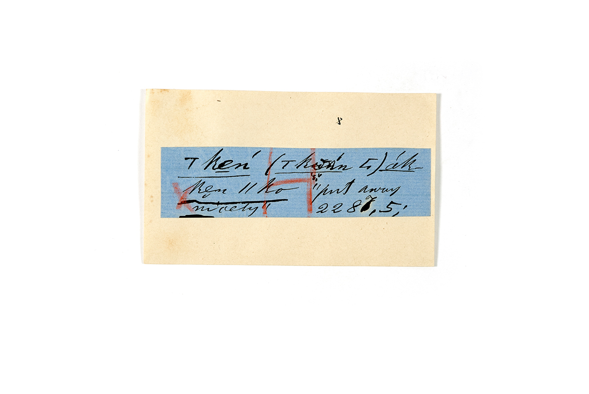 ink on blue paper glued on card