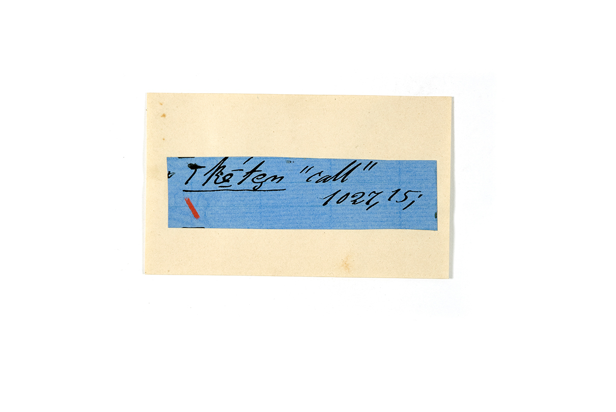 ink on blue paper glued on card